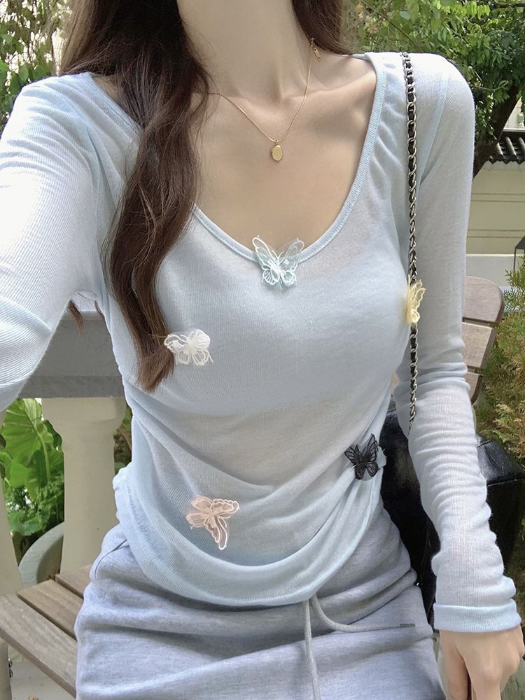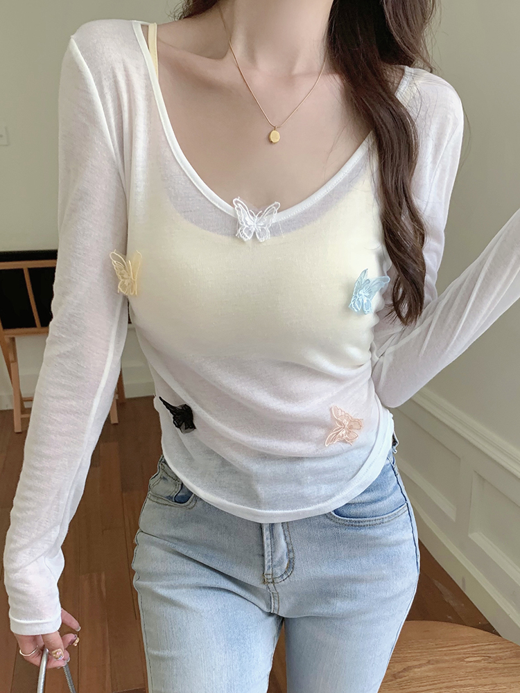 BY12041# 春季设计感蝴蝶纯欲上衣带胸垫吊带针织短袖两件套 服裝批發女裝批發服飾貨源