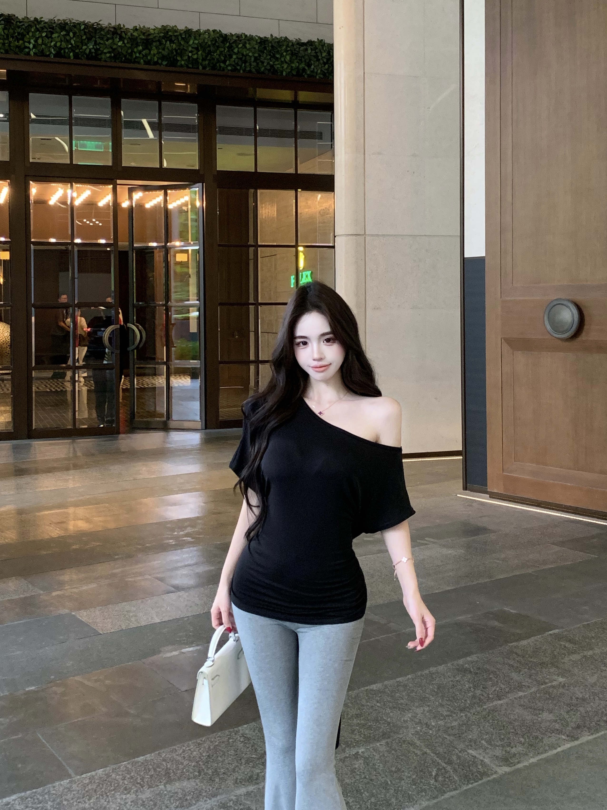 黑色上衣+灰色裤子