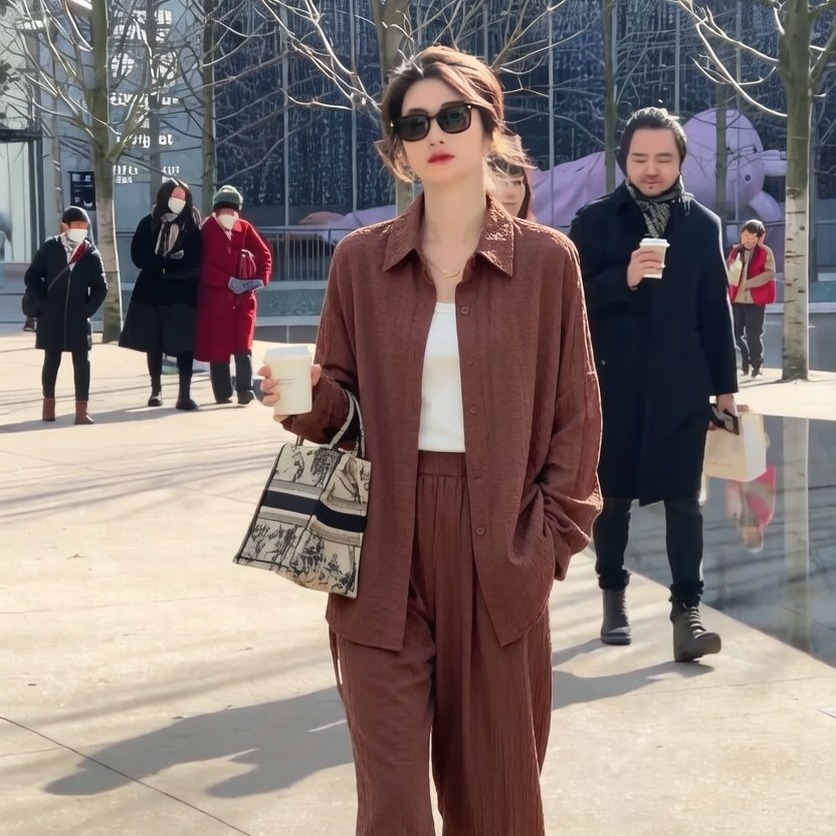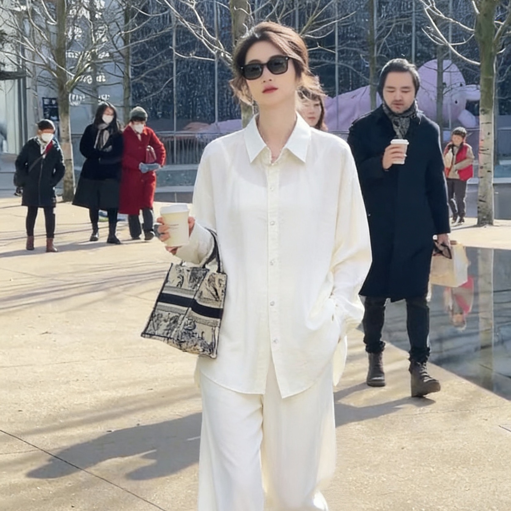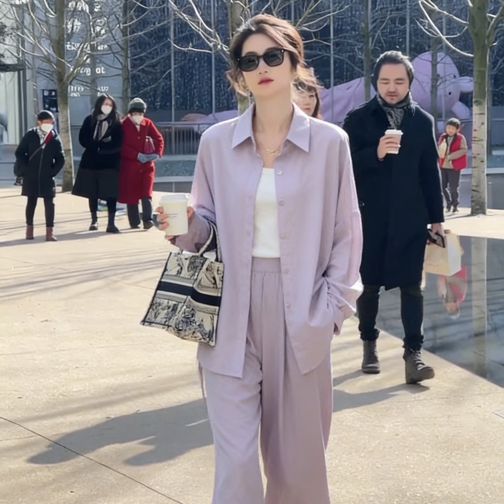 BY12240# 复古慵懒风衬衫套装女春季新款韩系松弛感衬衫休闲长裤两件套 服裝批發女裝批發服飾貨源