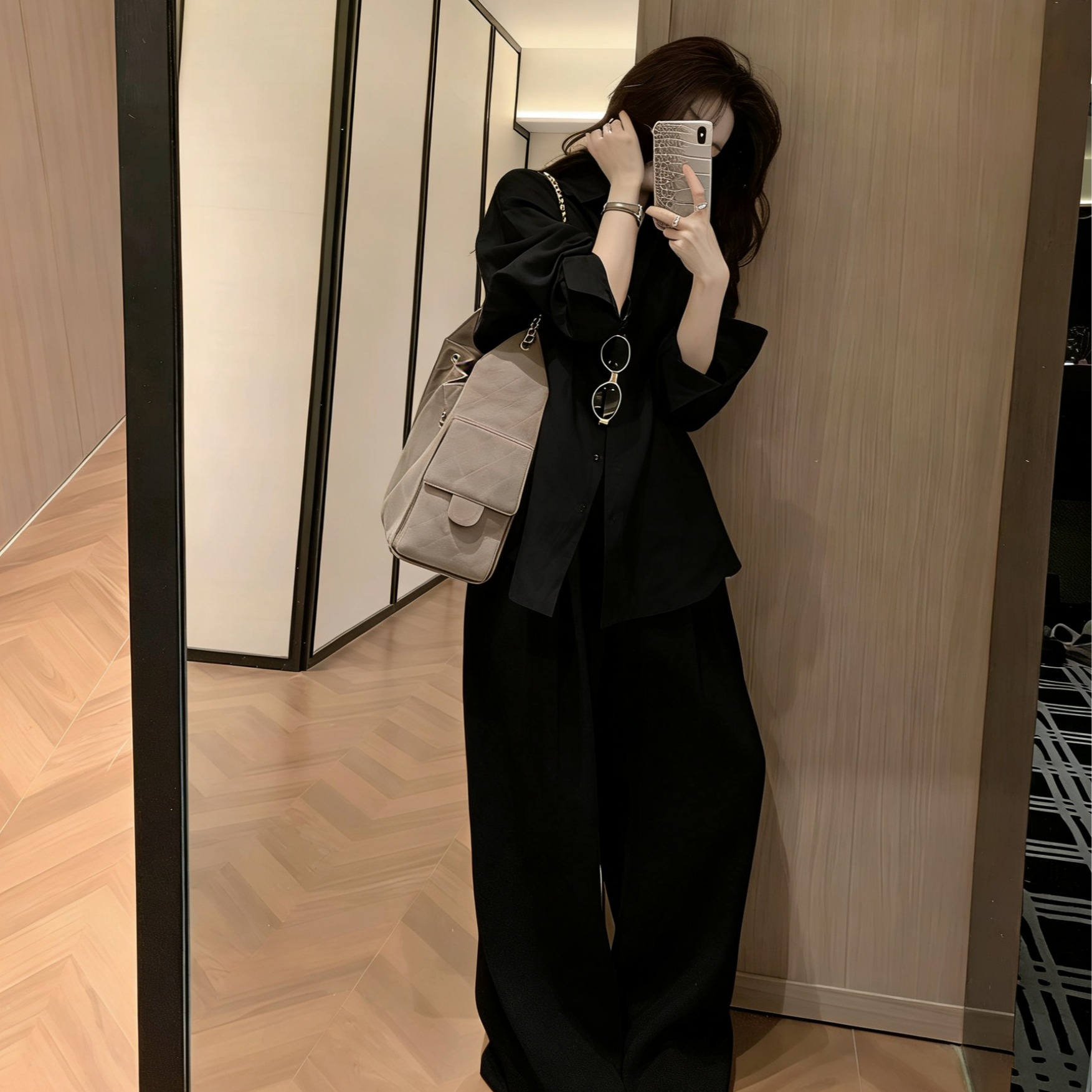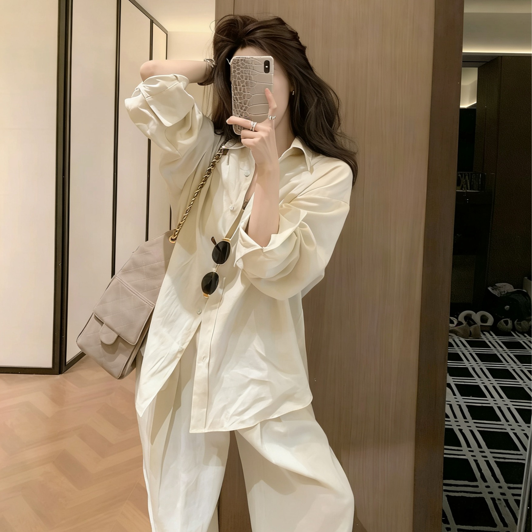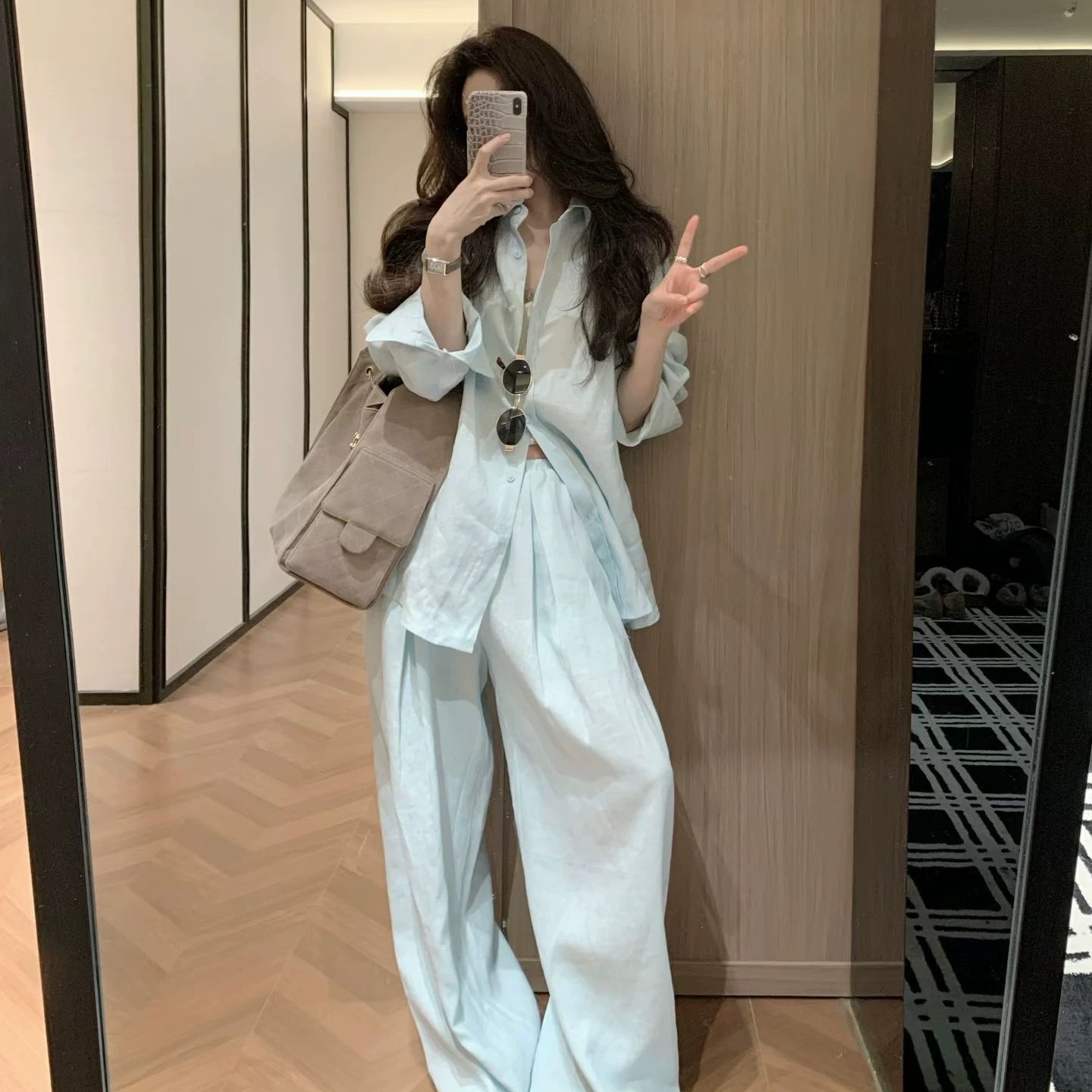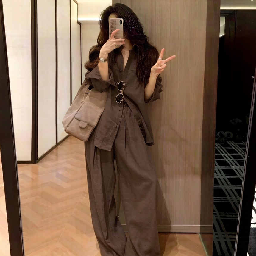 BY12241# 老钱风松弛感套装女春季薄款防晒衬衫外套休闲阔腿裤子两件套 服裝批發女裝批發服飾貨源
