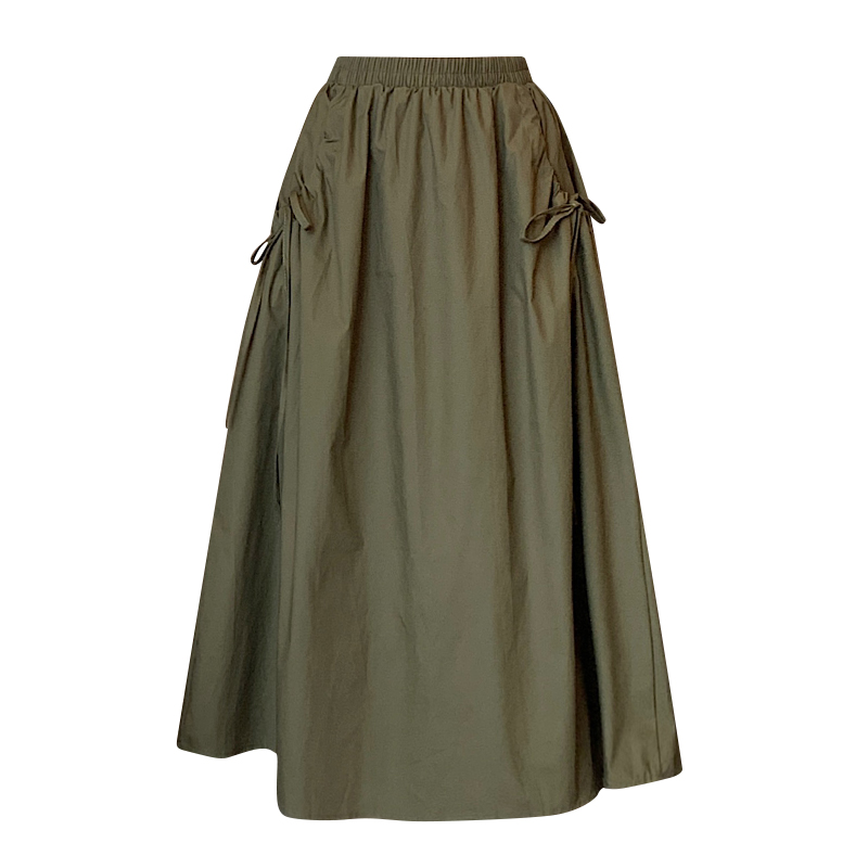 BY12816# 松紧腰百搭纯色系带抽绳口袋中长款纯棉工装a字半身裙 服裝批發女裝批發服飾貨源