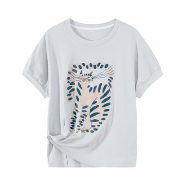 夏季侧扣收腰印花圆领短袖t恤大码胖MM洋气显瘦减龄半袖上衣 服裝批發女裝批發服飾貨源