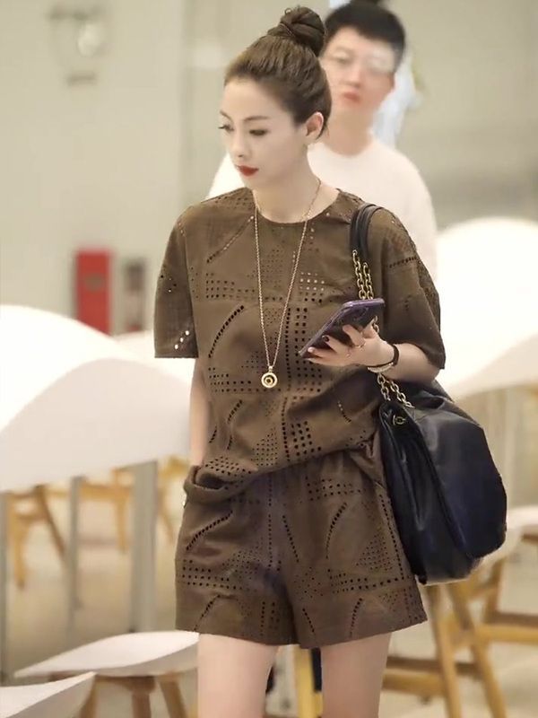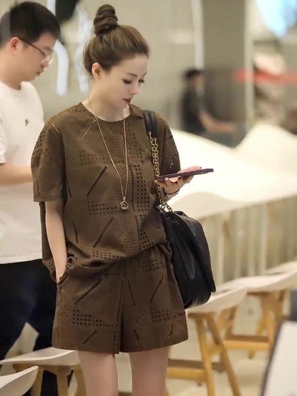 BY15359# 休闲套装女新款夏季宽松洋气镂空短袖T恤上衣时尚短裤两件套服裝批發女裝批發服飾貨源