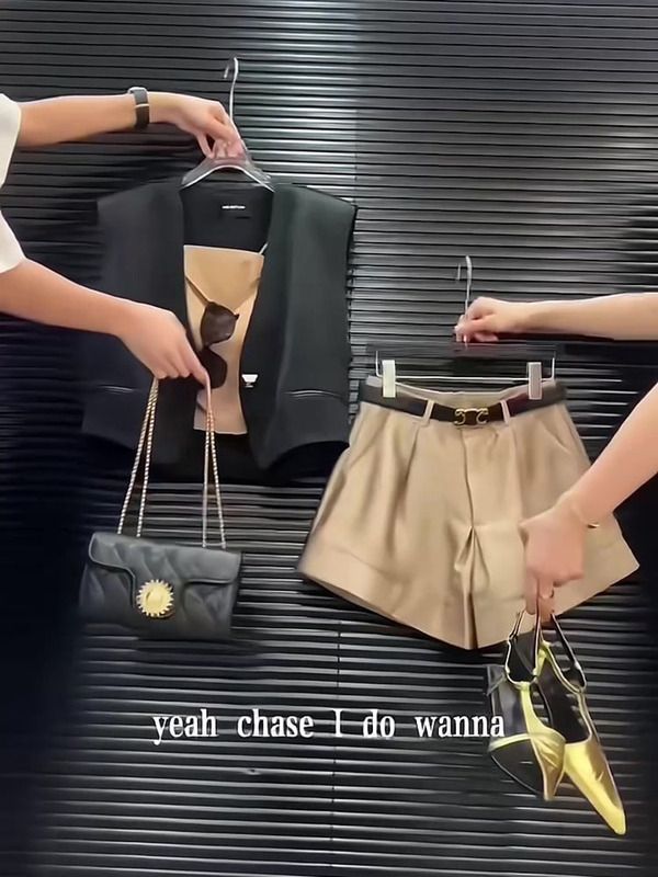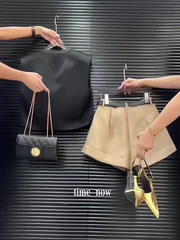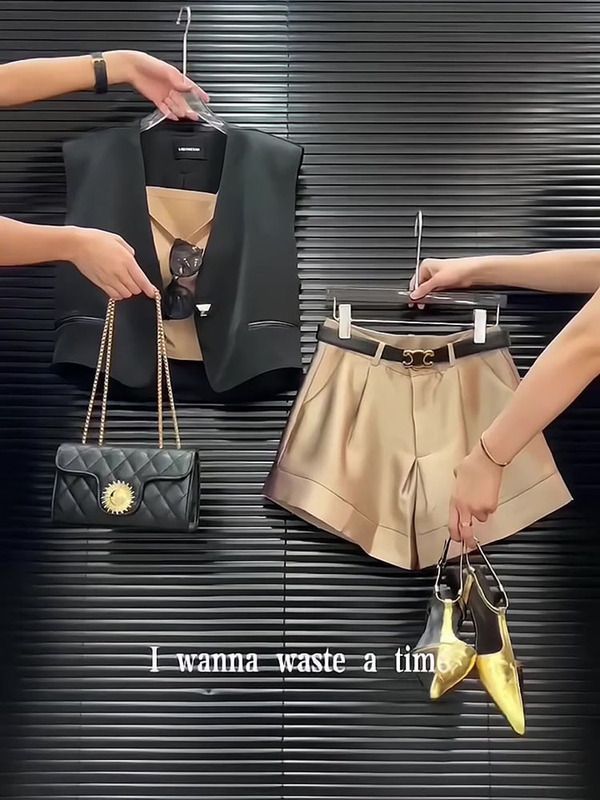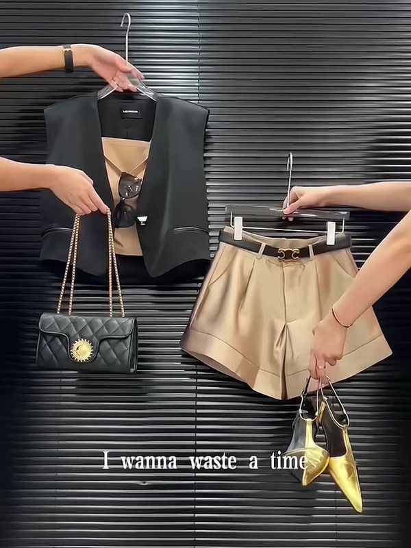 BY15363# 网红穿搭小个子时尚炸街高级感黑色马甲吊带短裤职业三件套装女夏服裝批發女裝批發服飾貨源