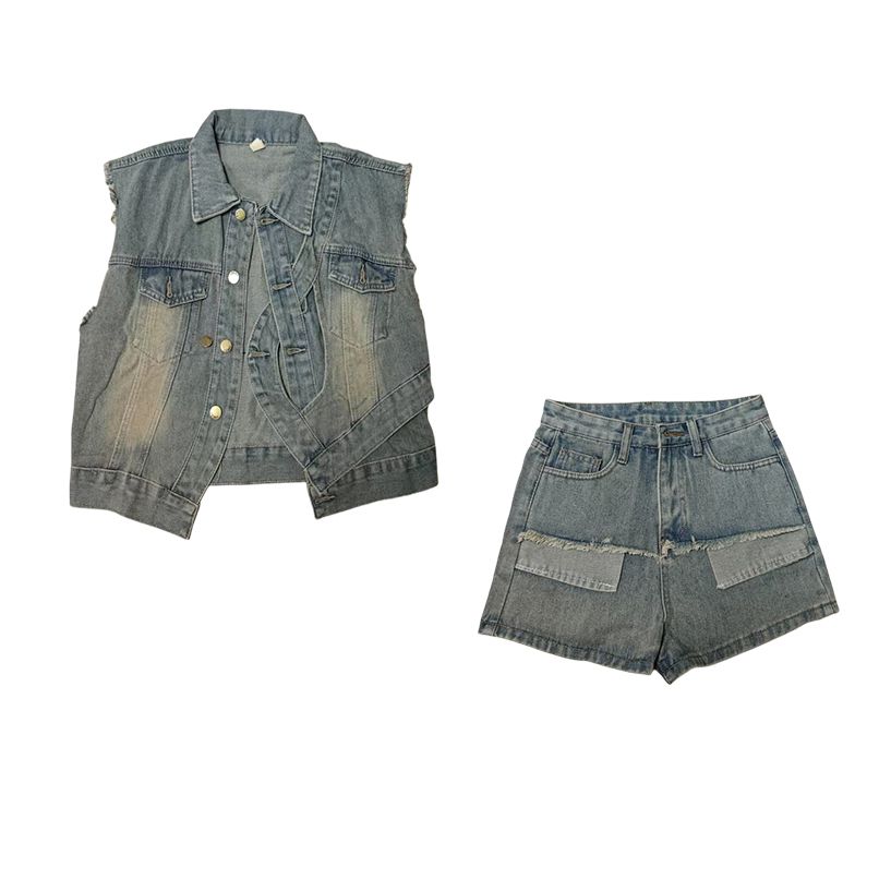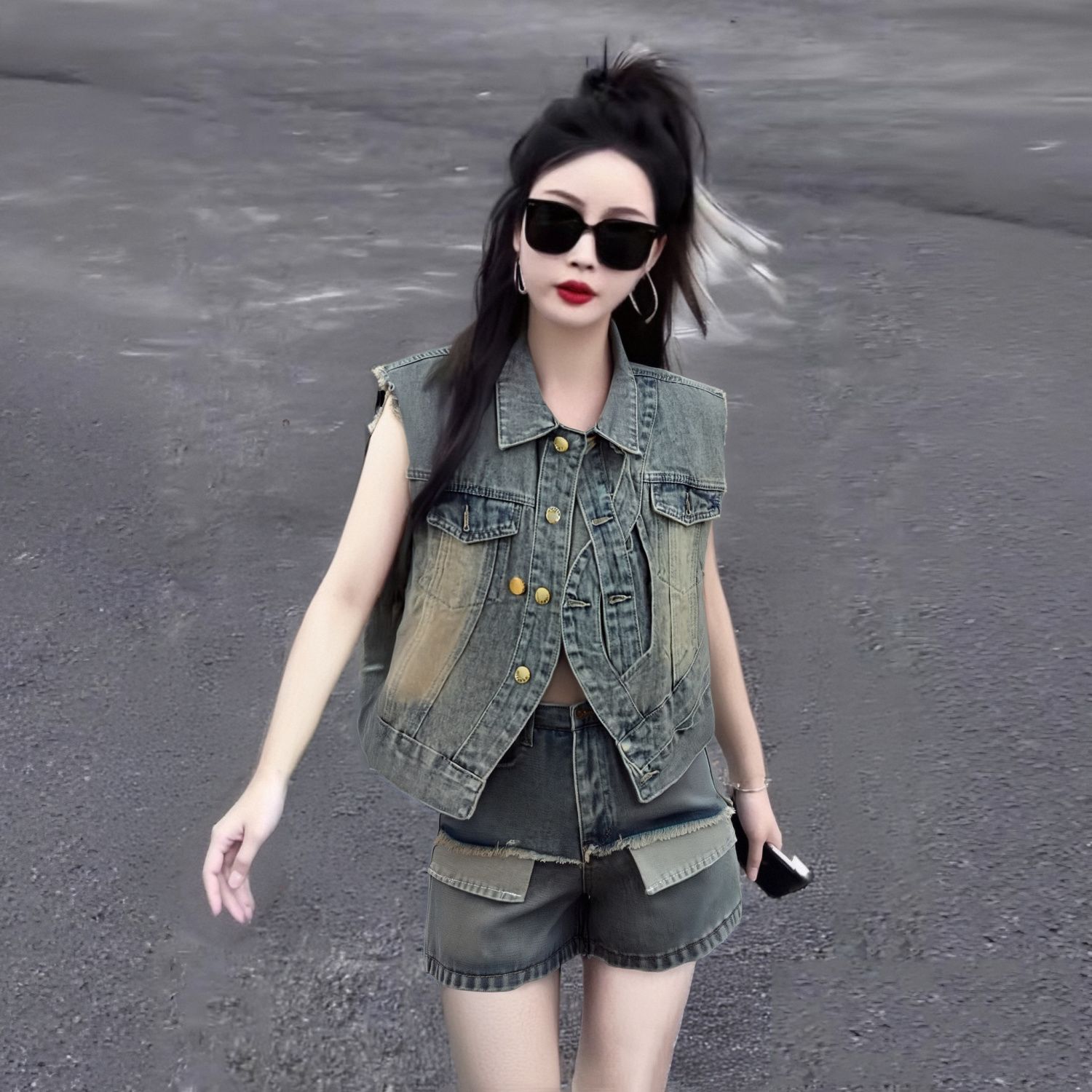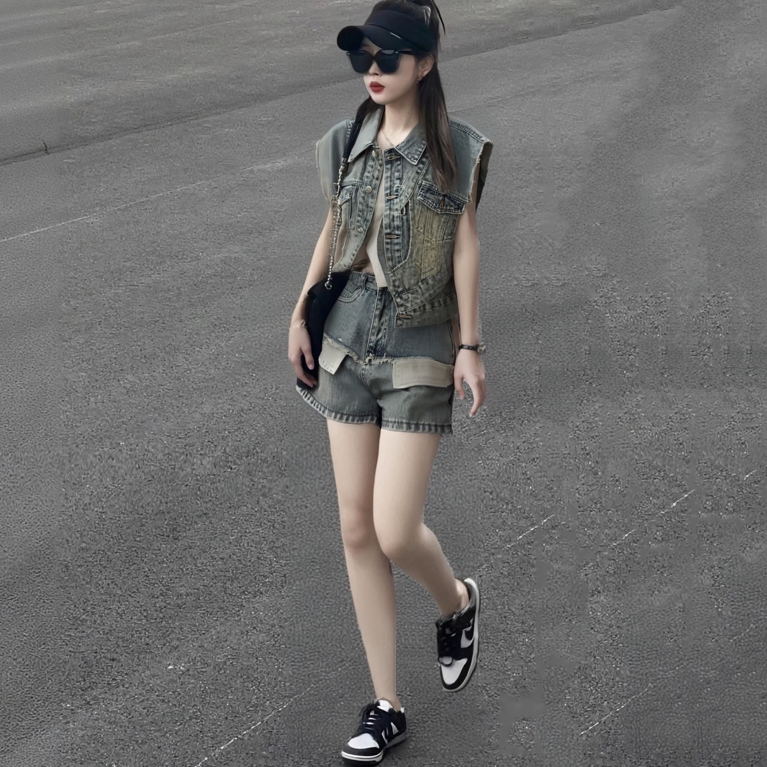 BY15366# 夏季新款成套搭配时尚马甲短裤套装女高档显瘦大码宽松休闲两件套服裝批發女裝批發服飾貨源