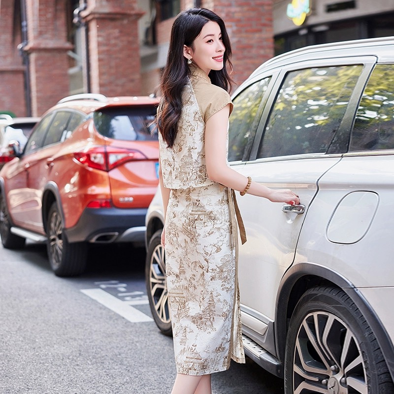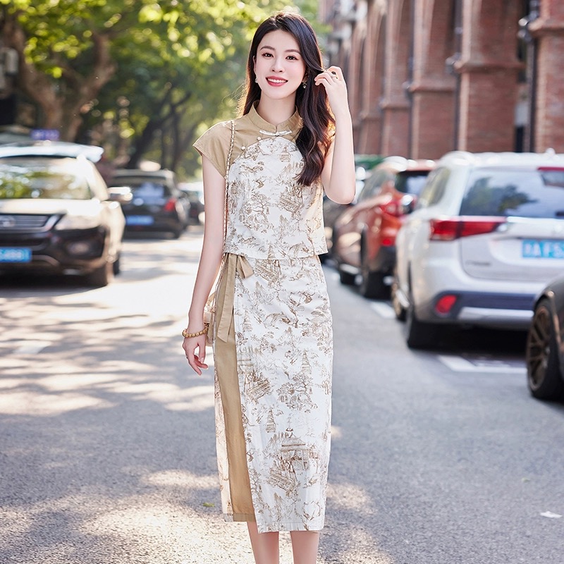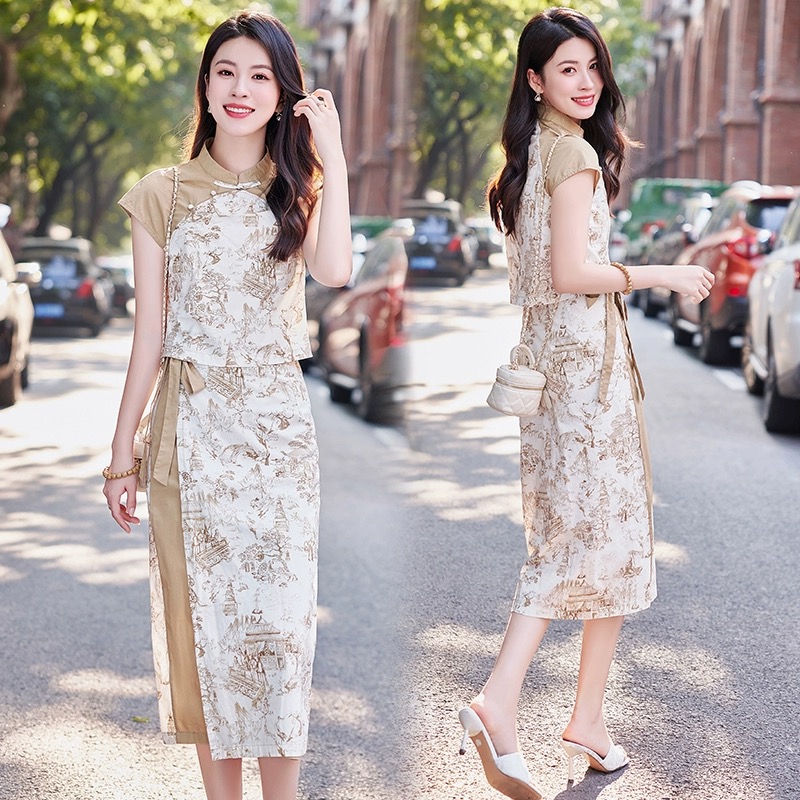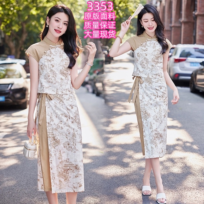 BY15370# 新中式复古印花短袖衬衫套装女夏季新款大方精致套裙两件套潮服裝批發女裝批發服飾貨源