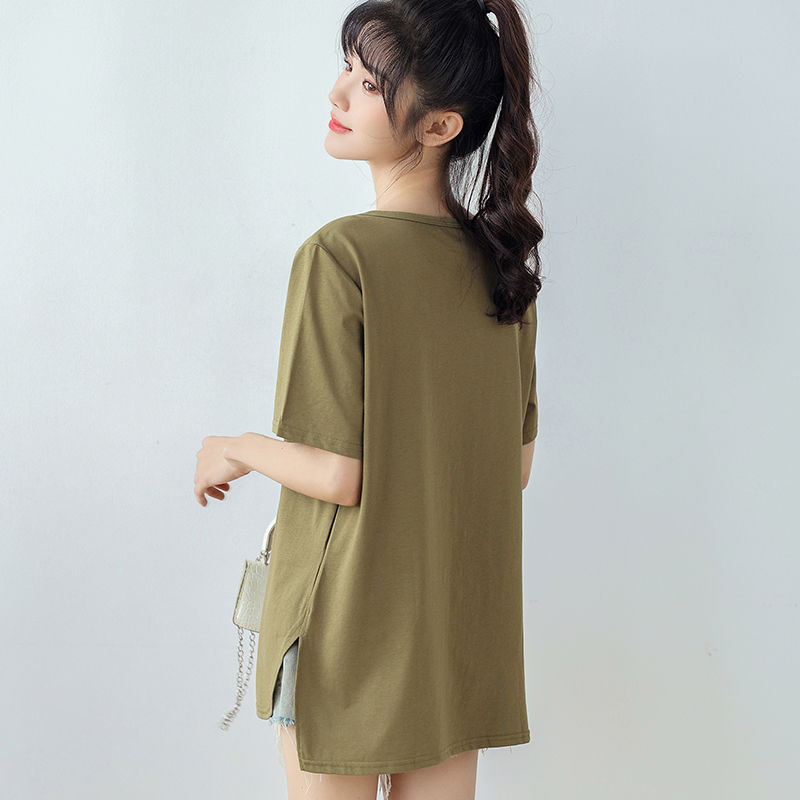 BY15381# 索罗娜精梳棉短袖t恤女夏纯色短款新款V领上衣大码女装服裝批發女裝批發服飾貨源