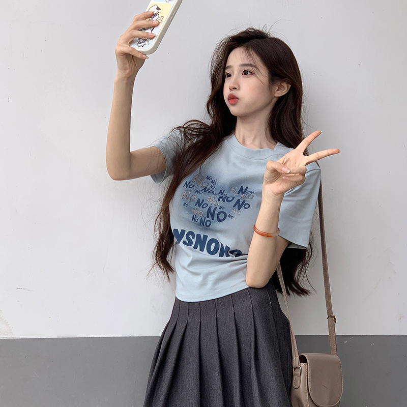BY15384# 短袖t恤夏潮刺绣正肩修身短款圆领上衣女装服裝批發女裝批發服飾貨源