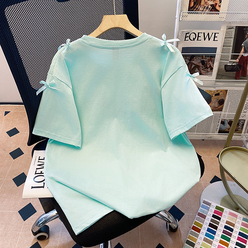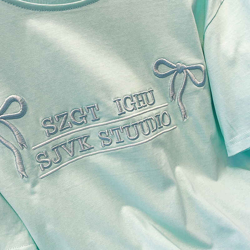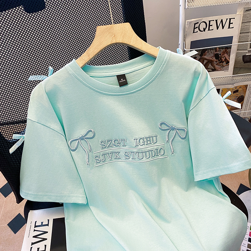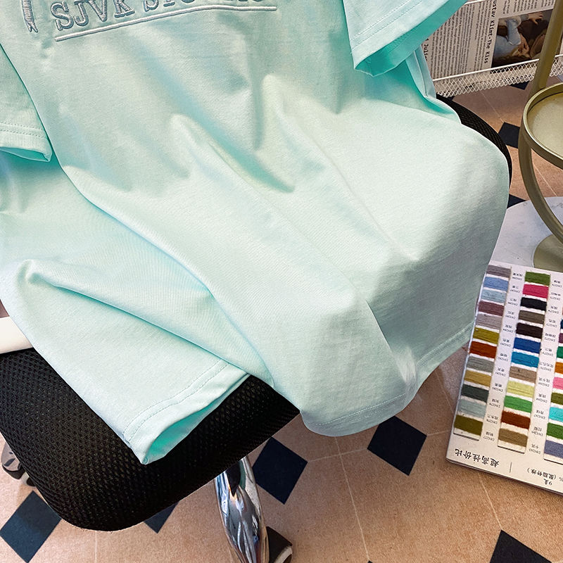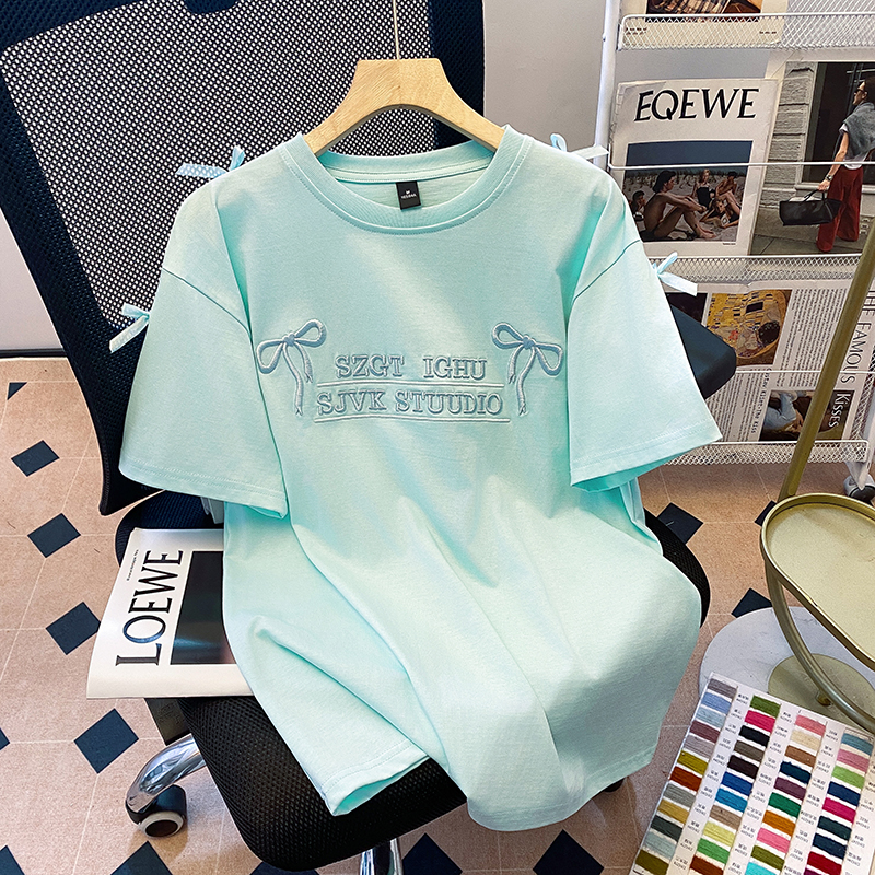 BY15387# 双纱纯棉短袖t恤女夏新款潮刺绣花中长正肩圆领上衣服裝批發女裝批發服飾貨源