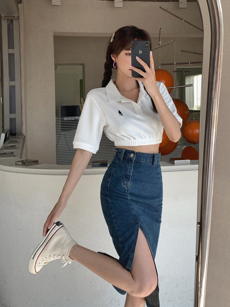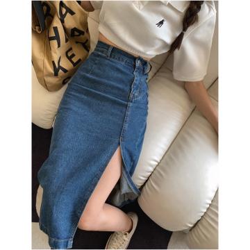 BY15401# 春夏新款牛仔半身裙女高腰显瘦开叉中长款蓝色修身包臀裙服裝批發女裝批發服飾貨源