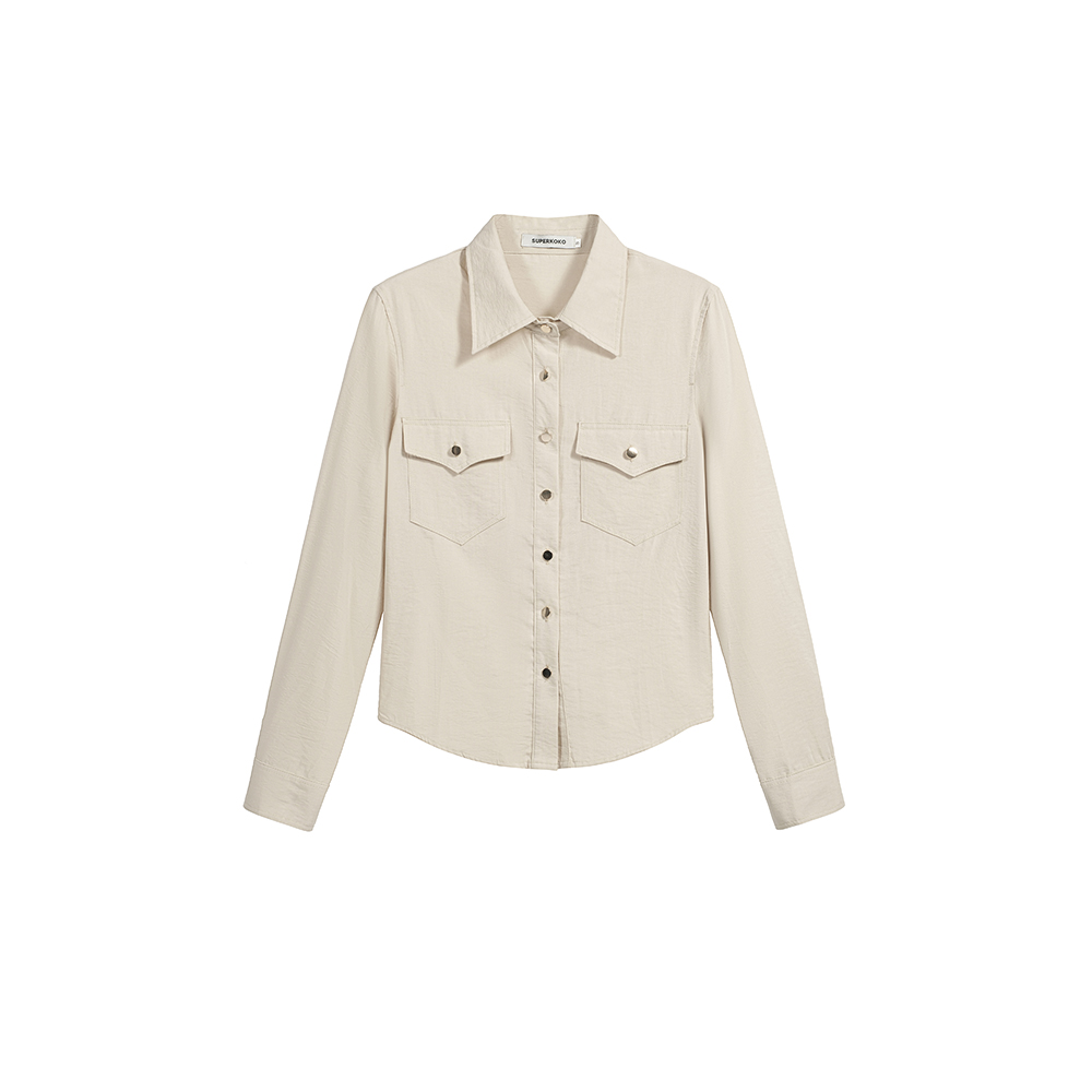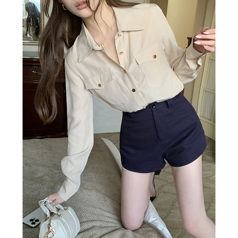 BY15409# 春装新款衬衣老钱风口袋长袖衬衫女休闲舒适设计感上衣服裝批發女裝批發服飾貨源