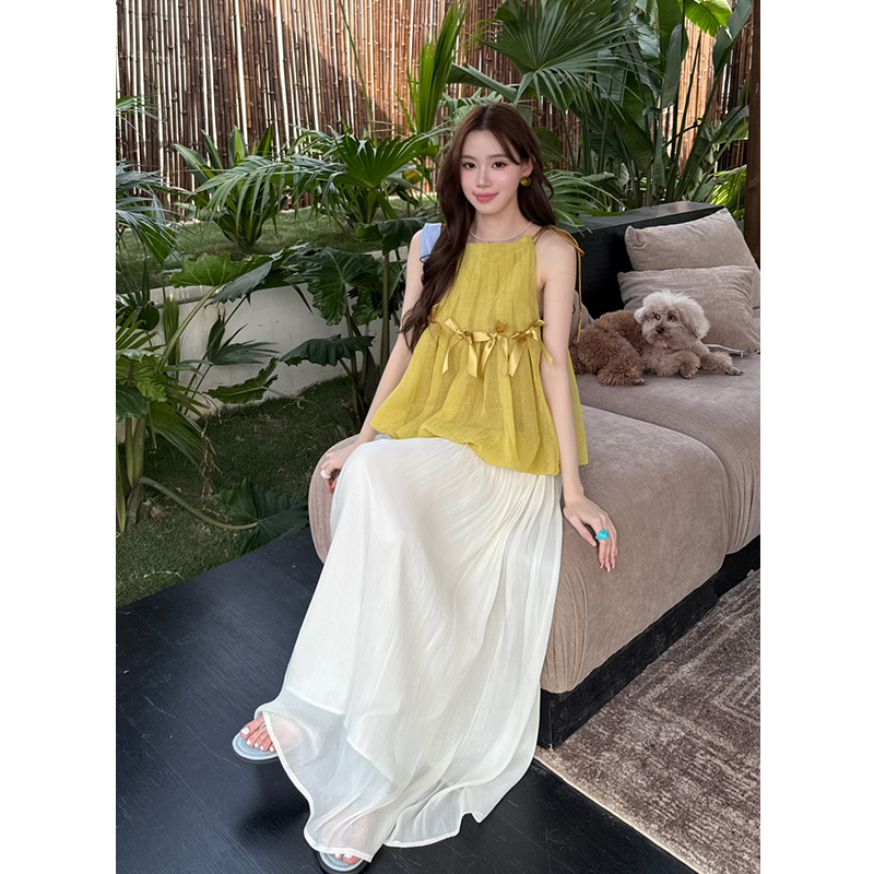 黄色上衣+半身裙