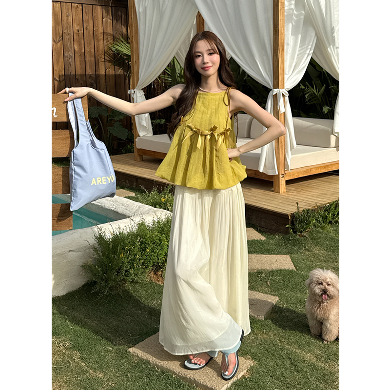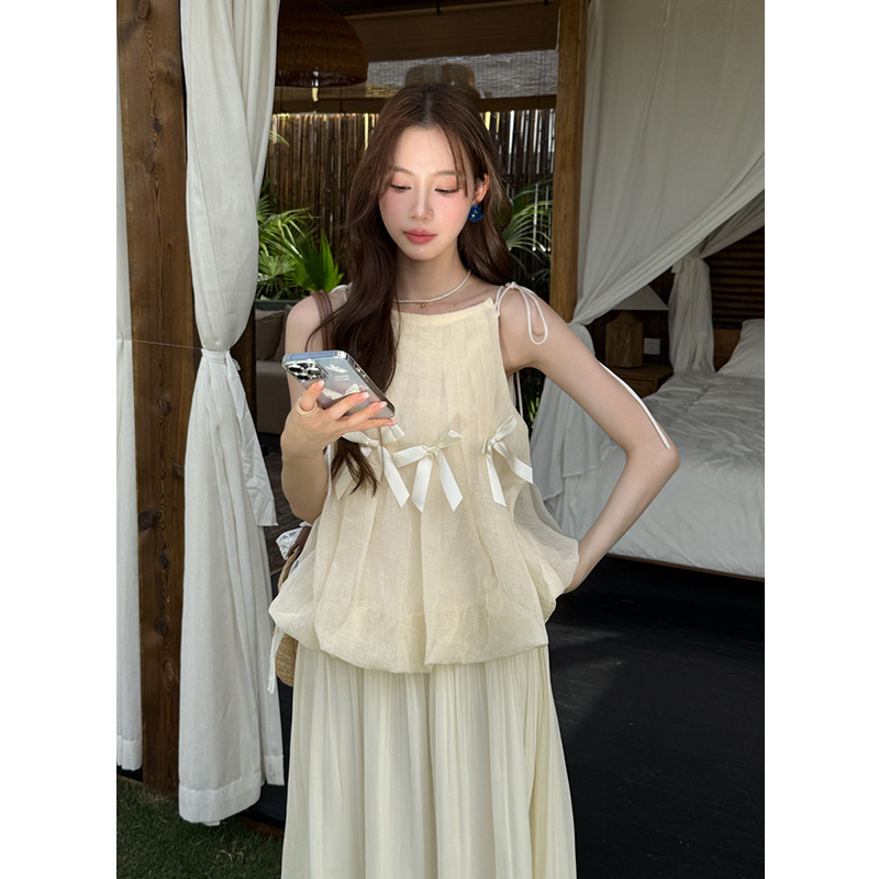 BY16568# 夏季新款纯色无袖雪纺衫+雪纺半身裙两件套女时尚套装 服裝批發女裝批發服飾貨源