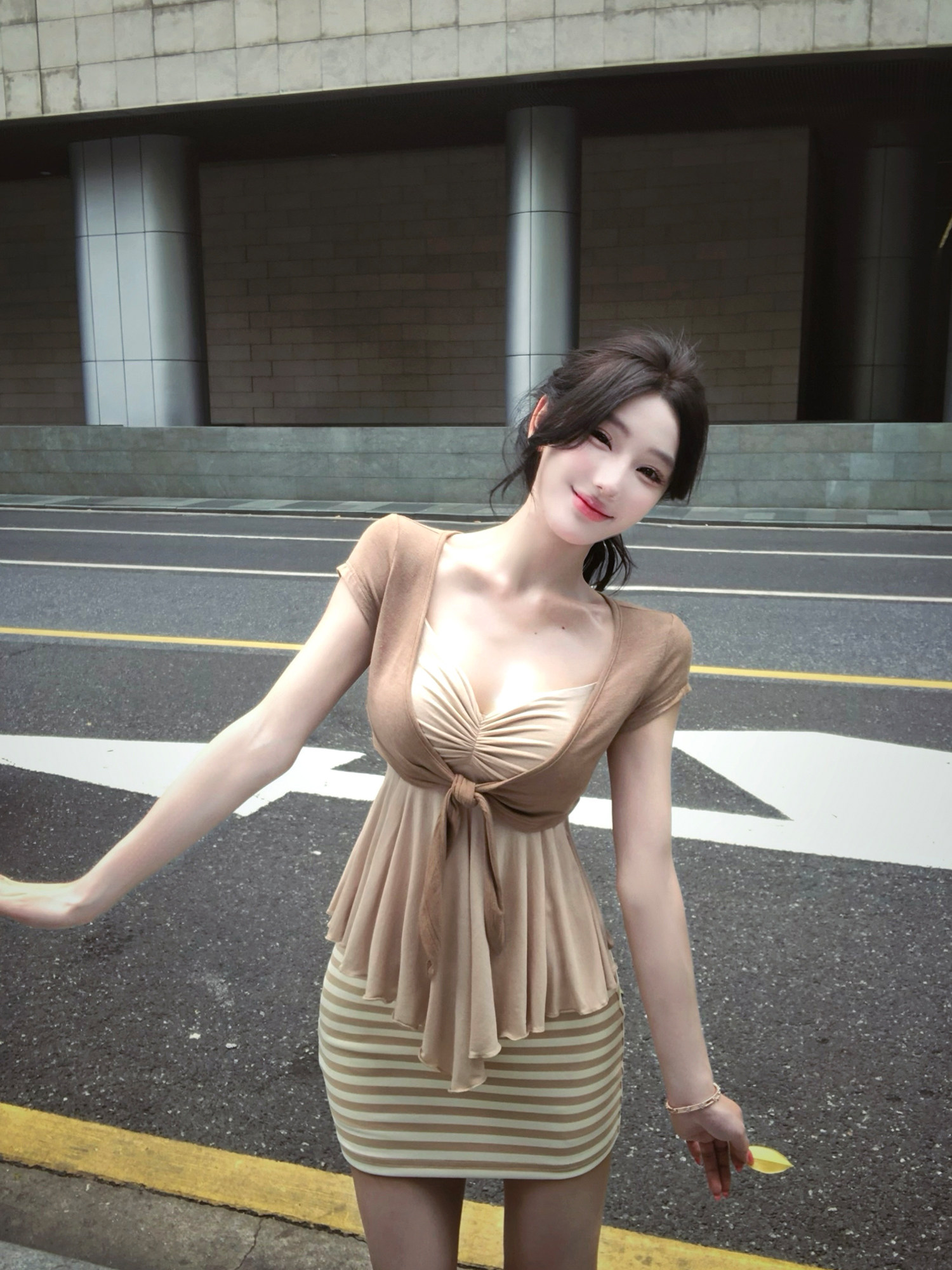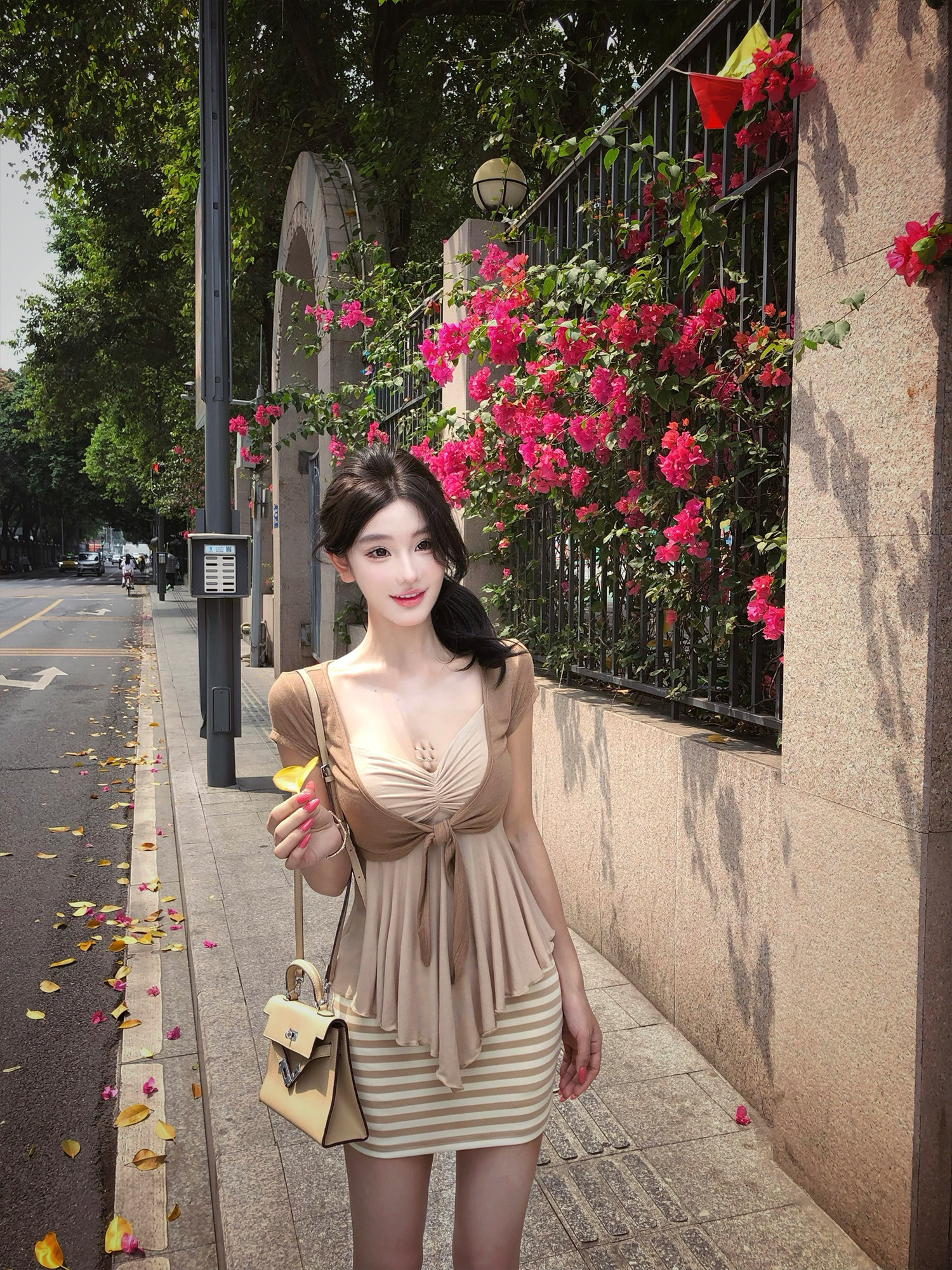 BY16618# 条纹流苏短款吊带女防晒开衫夏季小众条纹半裙套装 服裝批發女裝批發服飾貨源