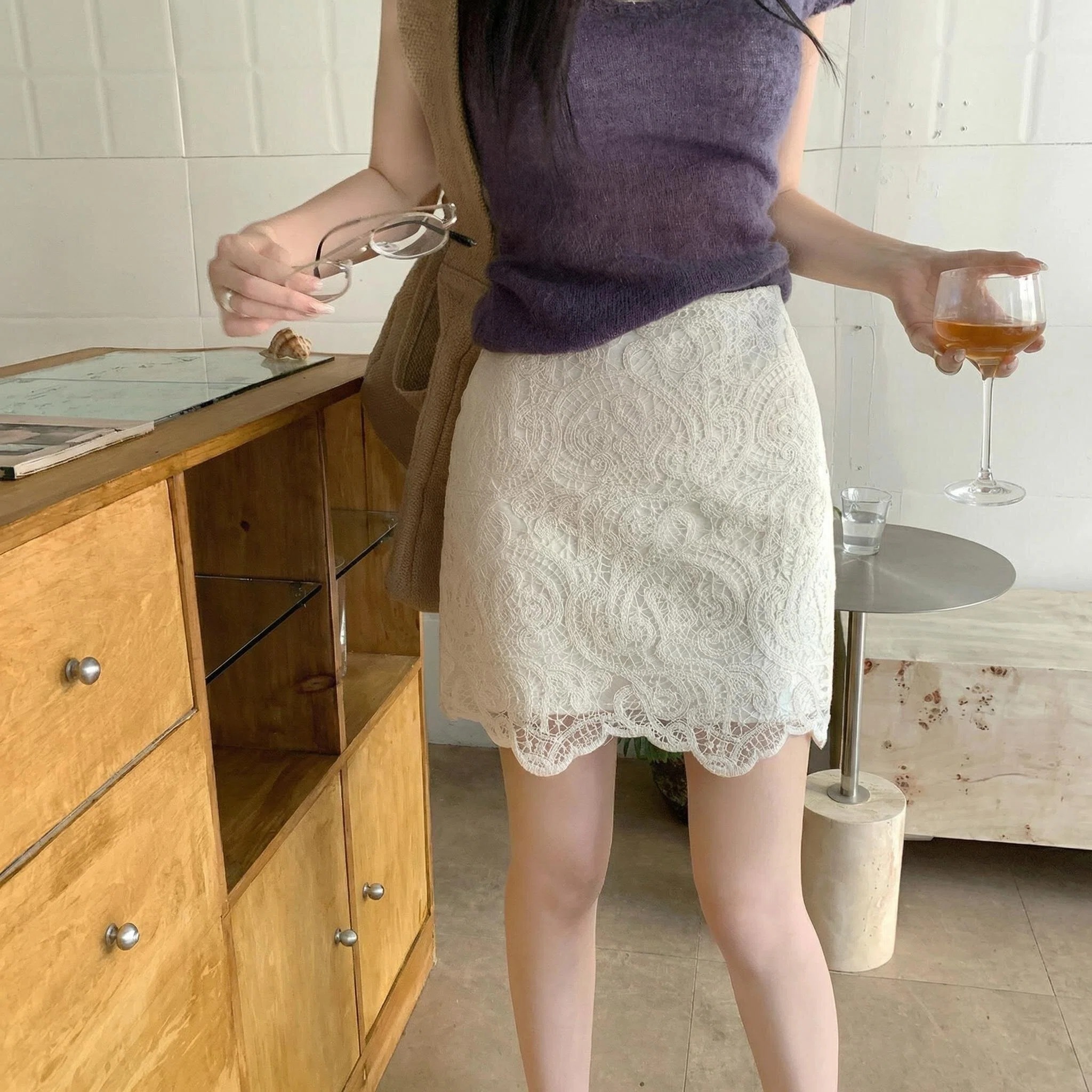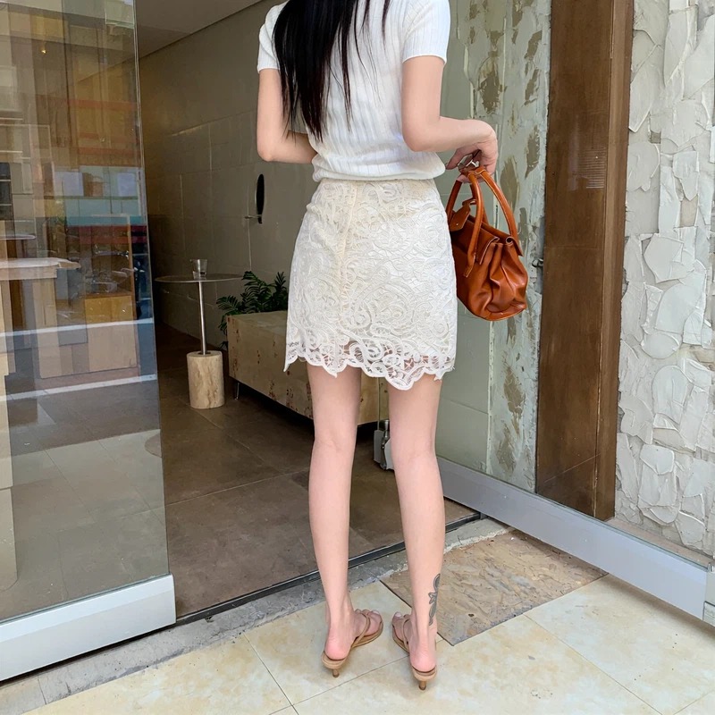 BY17244# 法式钩花蕾丝半身裙夏新款优雅修身高腰显瘦包臀短裙