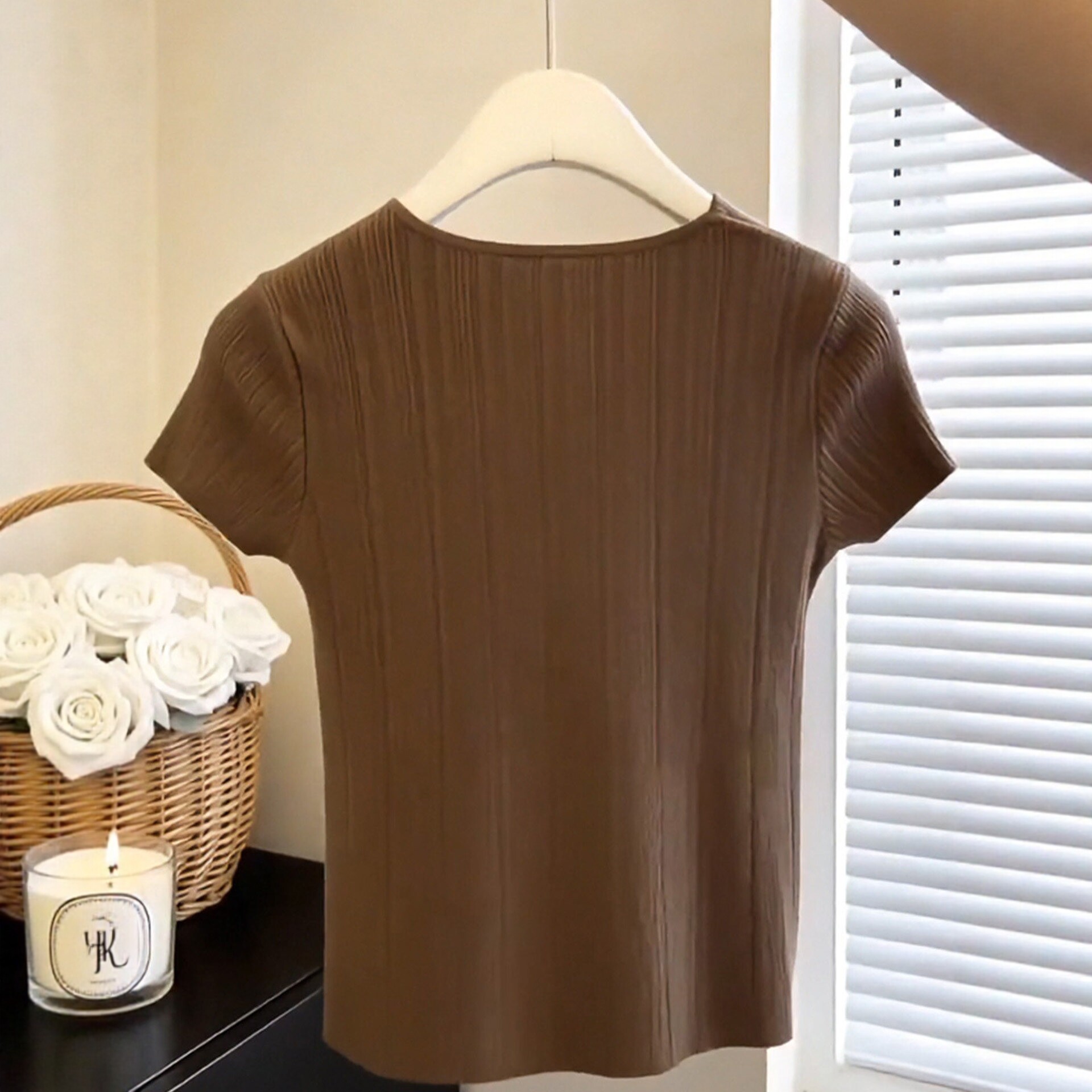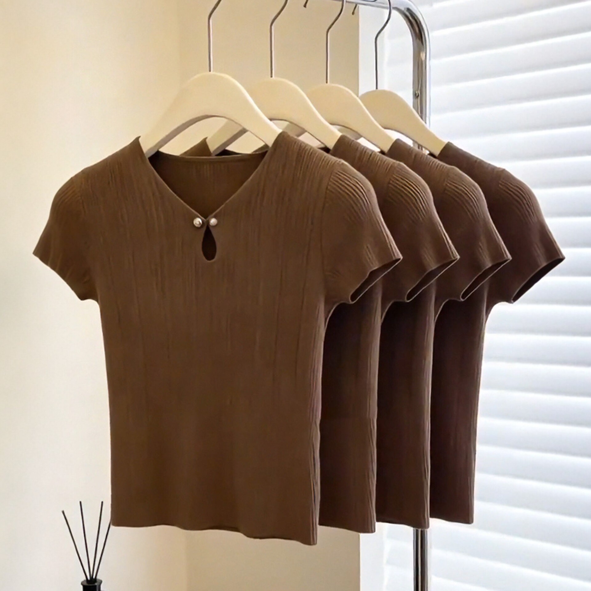 BY17263# 春夏新款高端精致气质时尚显瘦镂空短袖针织T恤女装爆款上衣
