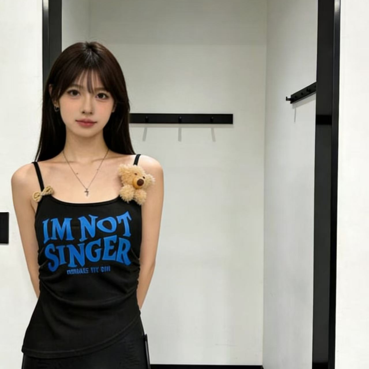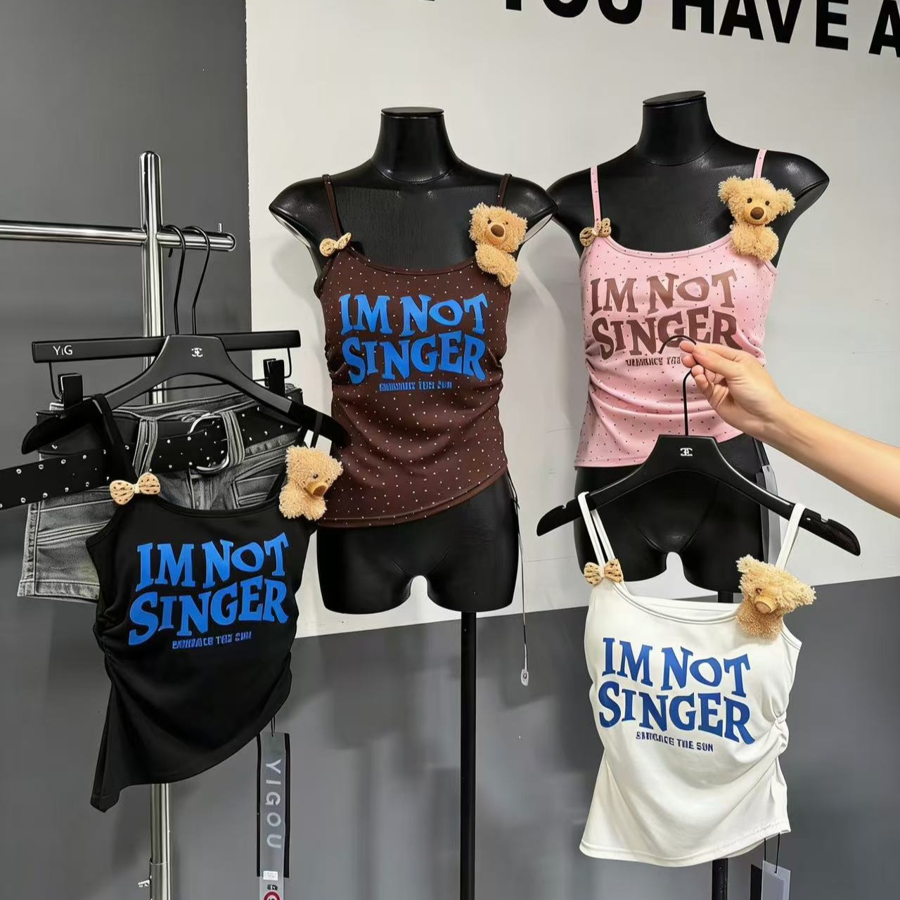 甜辣妹蝴蝶结小熊吊带有胸垫美背心波点春夏新ins潮减龄显瘦A 服裝批發女裝批發服飾貨源