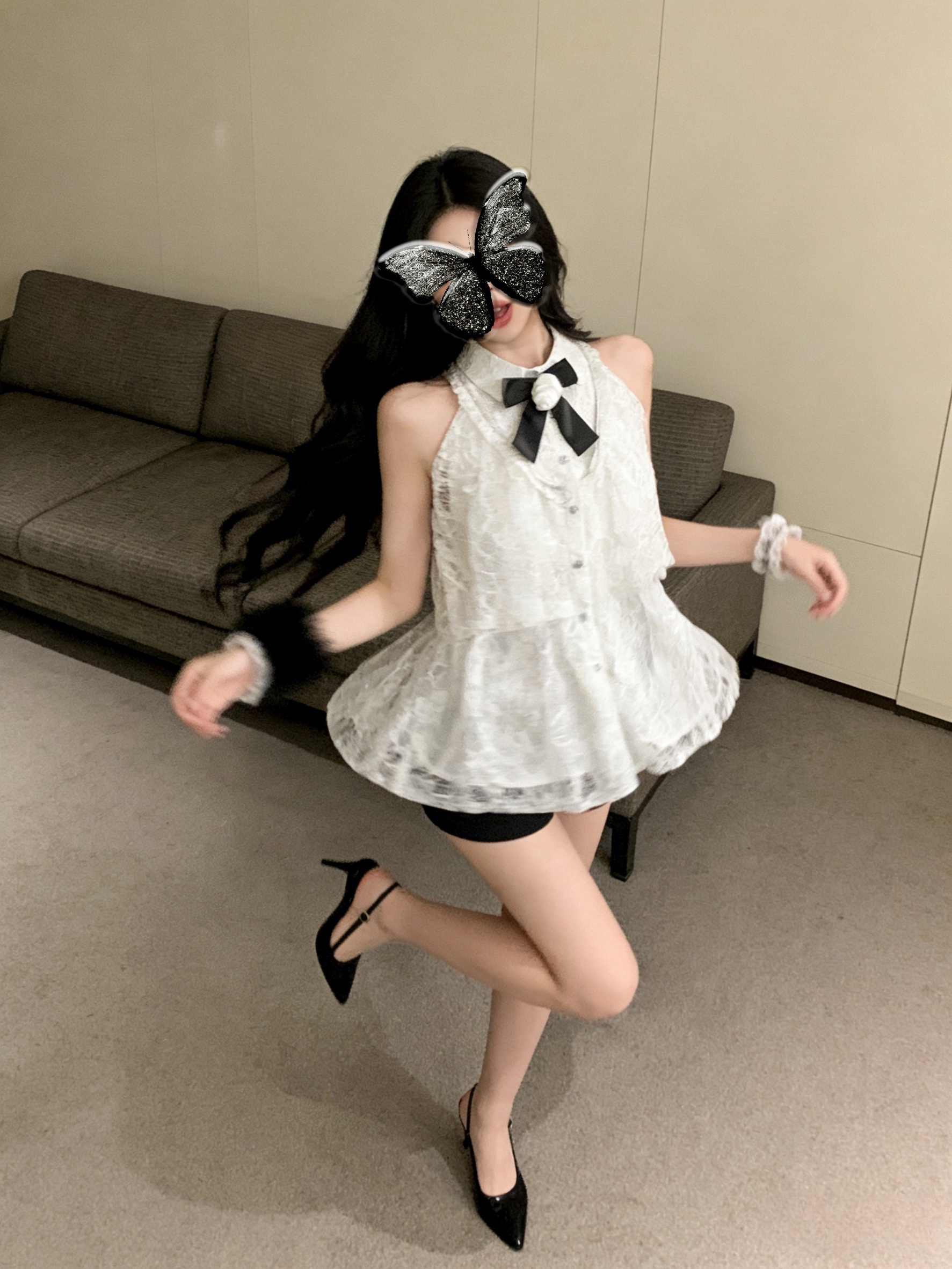 BY18041# 无袖宽松衬衫领娃娃气质小香风上衣女蕾丝时尚女装 服裝批發女裝批發服飾貨源