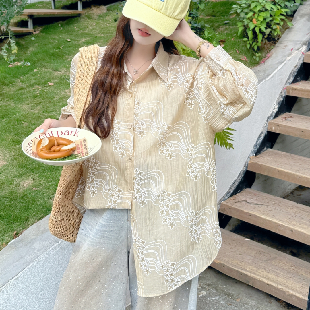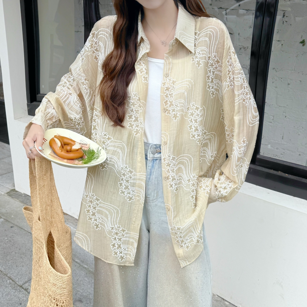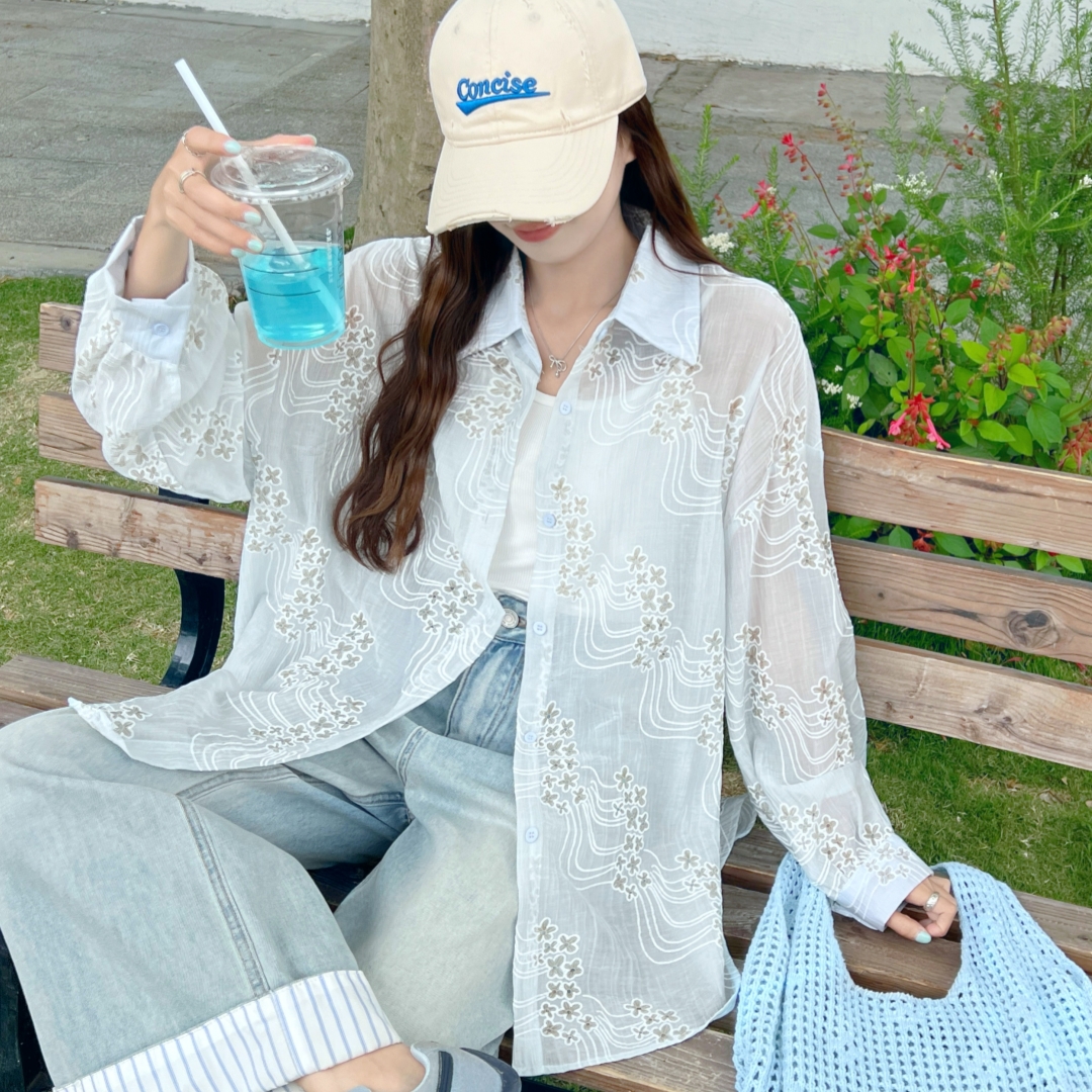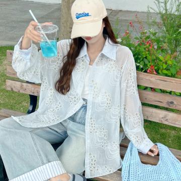 Home > 打底背心、防晒衣、围巾、披肩 > BY18087# 韩版夏季oversize星星绣花衬衫长袖宽松长袖休闲防晒衬衣女外套潮 服裝批發女裝批發服飾貨源