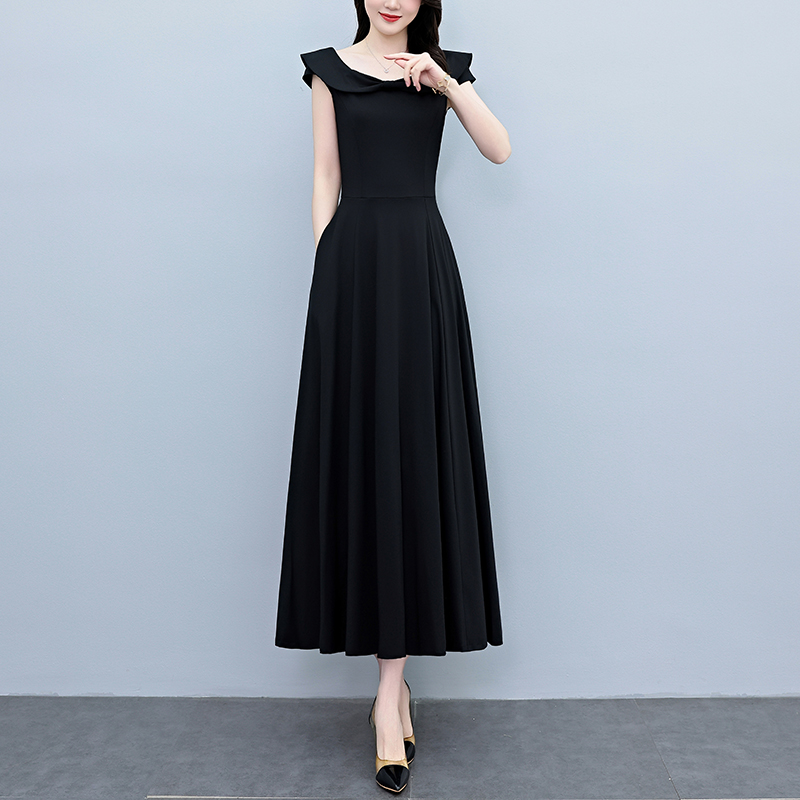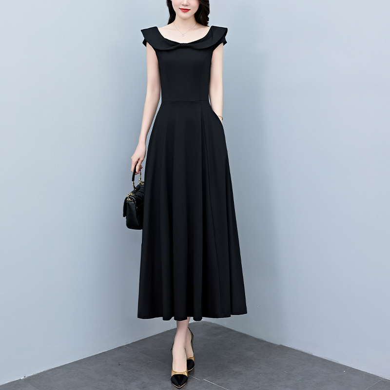 BY18301# 夏季新款赫本黑色连衣裙长款气质收腰显瘦优雅长裙 服裝批發女裝批發服飾貨源