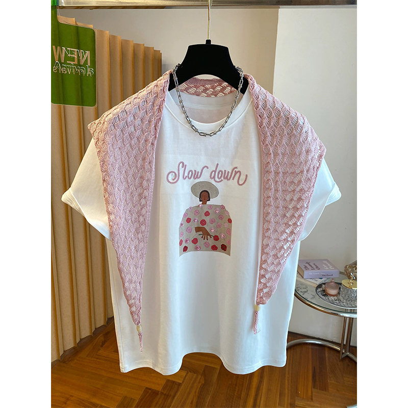 BY18311# 夏季纯棉+披肩8个码数特大码足300斤披肩短袖T恤两件套 服裝批發女裝批發服飾貨源