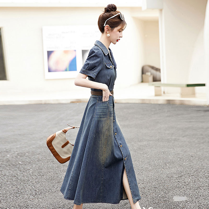 BY18628# 轻奢高端气质牛仔裙连衣裙女夏季薄款新款端庄大气长过膝长裙 服裝批發女裝批發服飾貨源