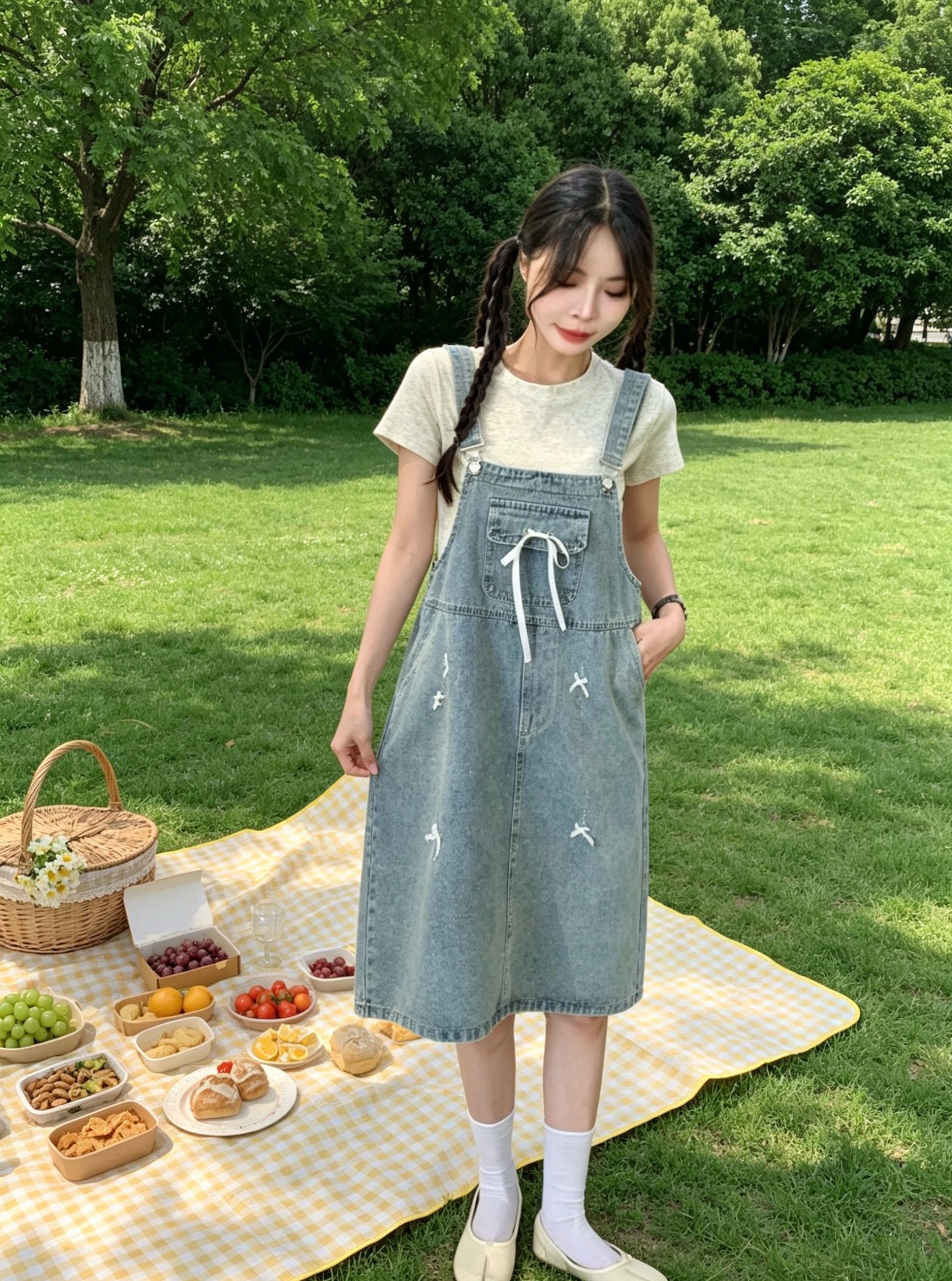 浅蓝色背带裙