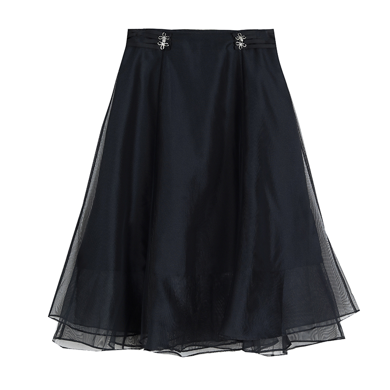 BY18891# 黑色网纱a字半身裙夏季新款复古优雅显瘦中长裙 服裝批發女裝批發服飾貨源