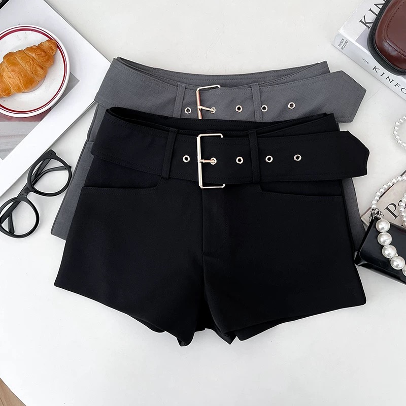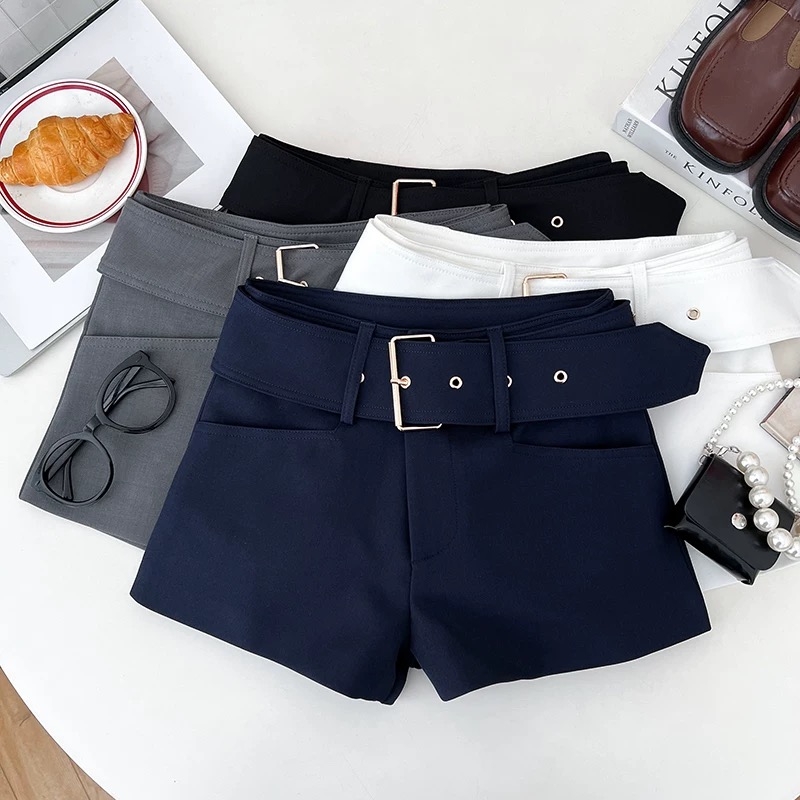 BY18980# 美式辣妹时尚宽腰带高腰显瘦西装短裤阔腿裤休闲裤热裤打底裤女 服裝批發女裝批發服飾貨源