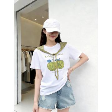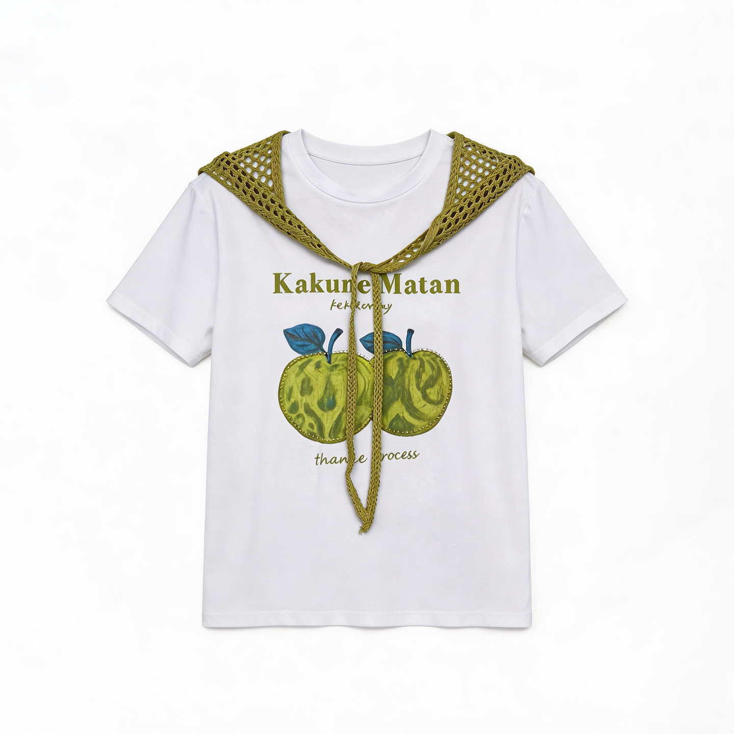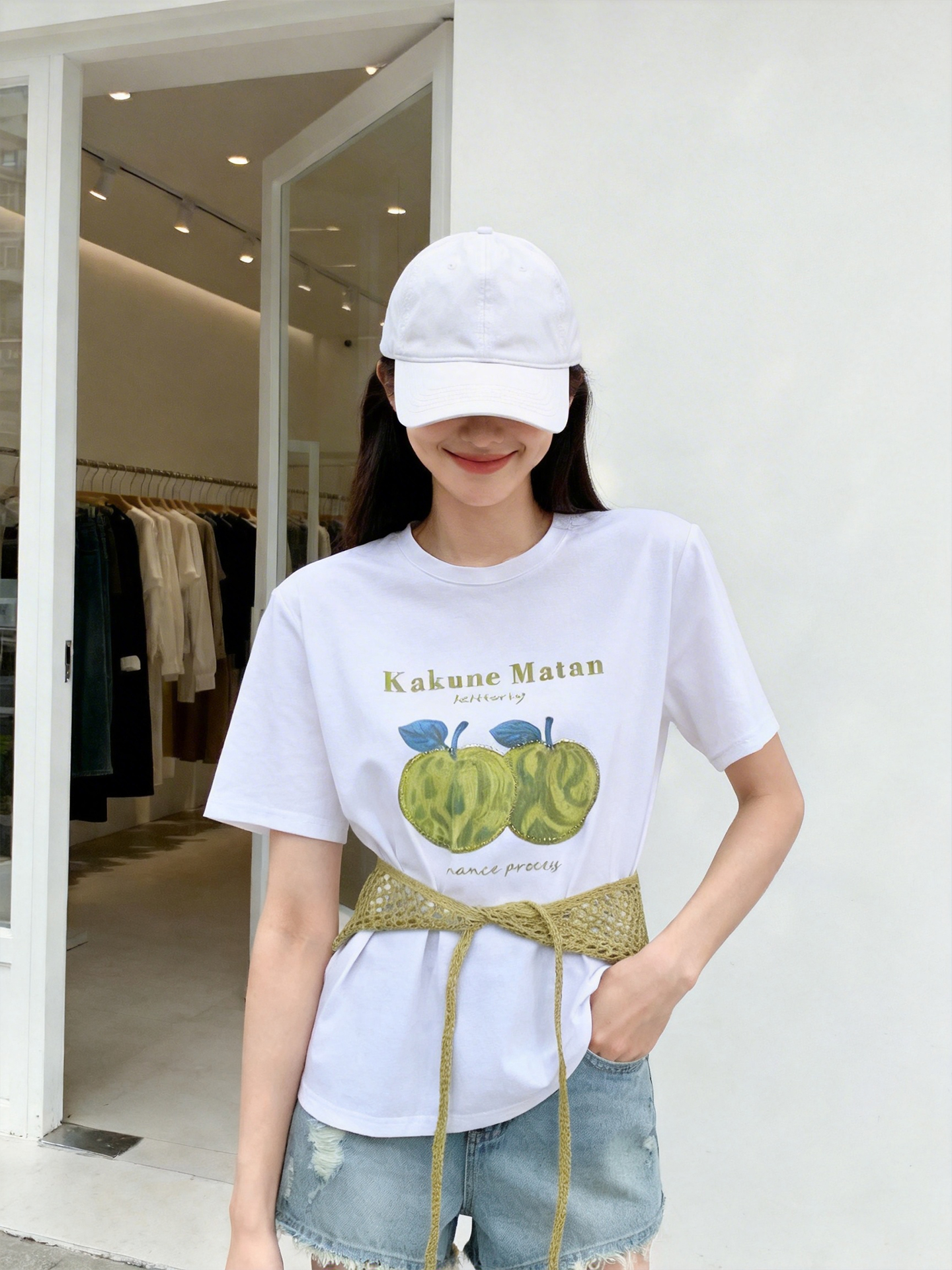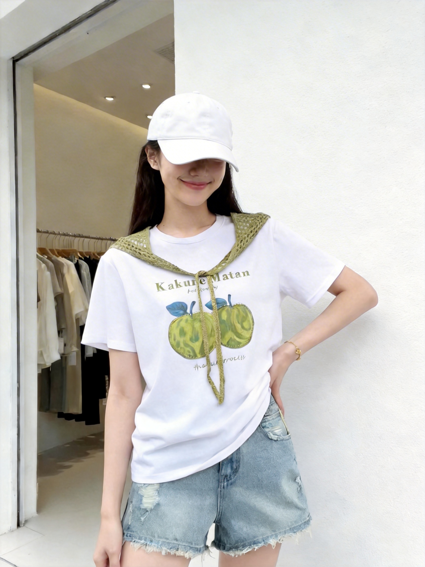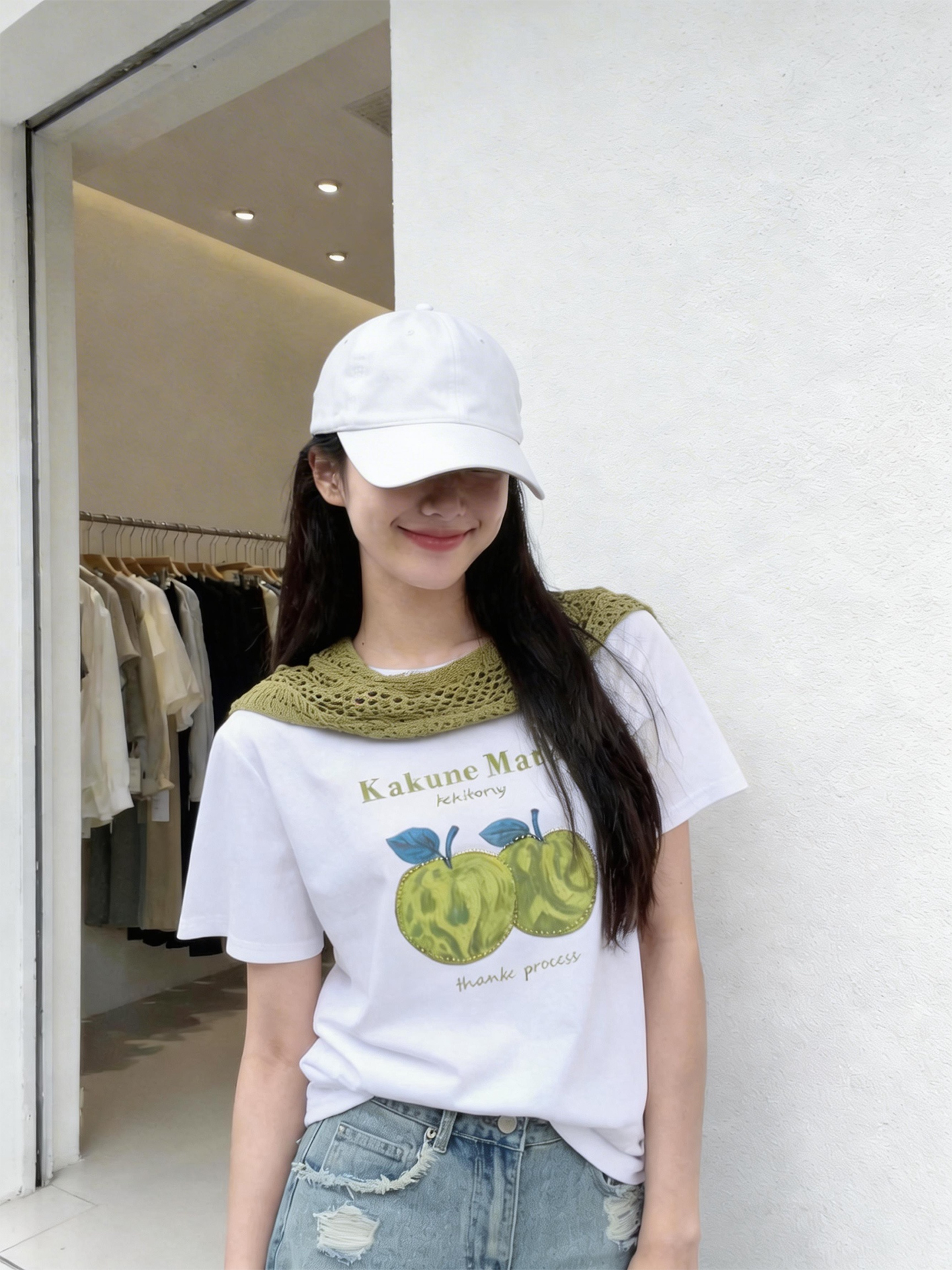 BY11672# 夏季新款韩系温柔风青苹果印花披肩两件T恤女宽松显瘦 服裝批發女裝批發服飾貨源