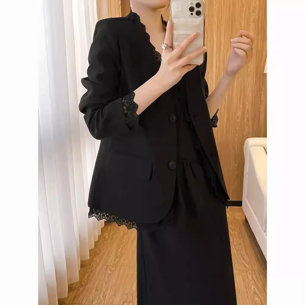 BY11721# 蕾丝拼接小香风西装外套女春季新款韩系温柔风显瘦西服休闲 服裝批發女裝批發服飾貨源
