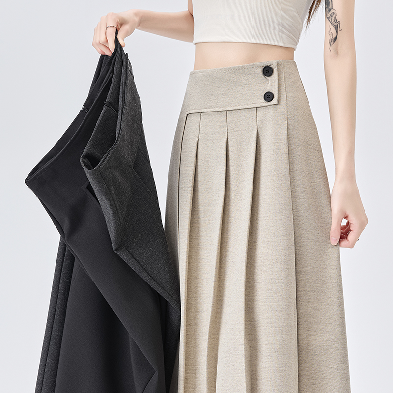BY11932# 不规则西装百褶半身裙女夏季新款高腰显瘦中长款A字大摆伞裙 服裝批發女裝批發服飾貨源