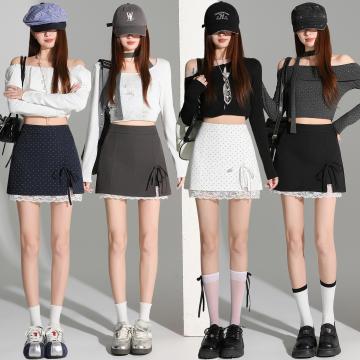 BY11984# 高腰气质灰色波点半身裙女春夏新款修身显瘦A字蛋糕短裙 服裝批發女裝批發服飾貨源