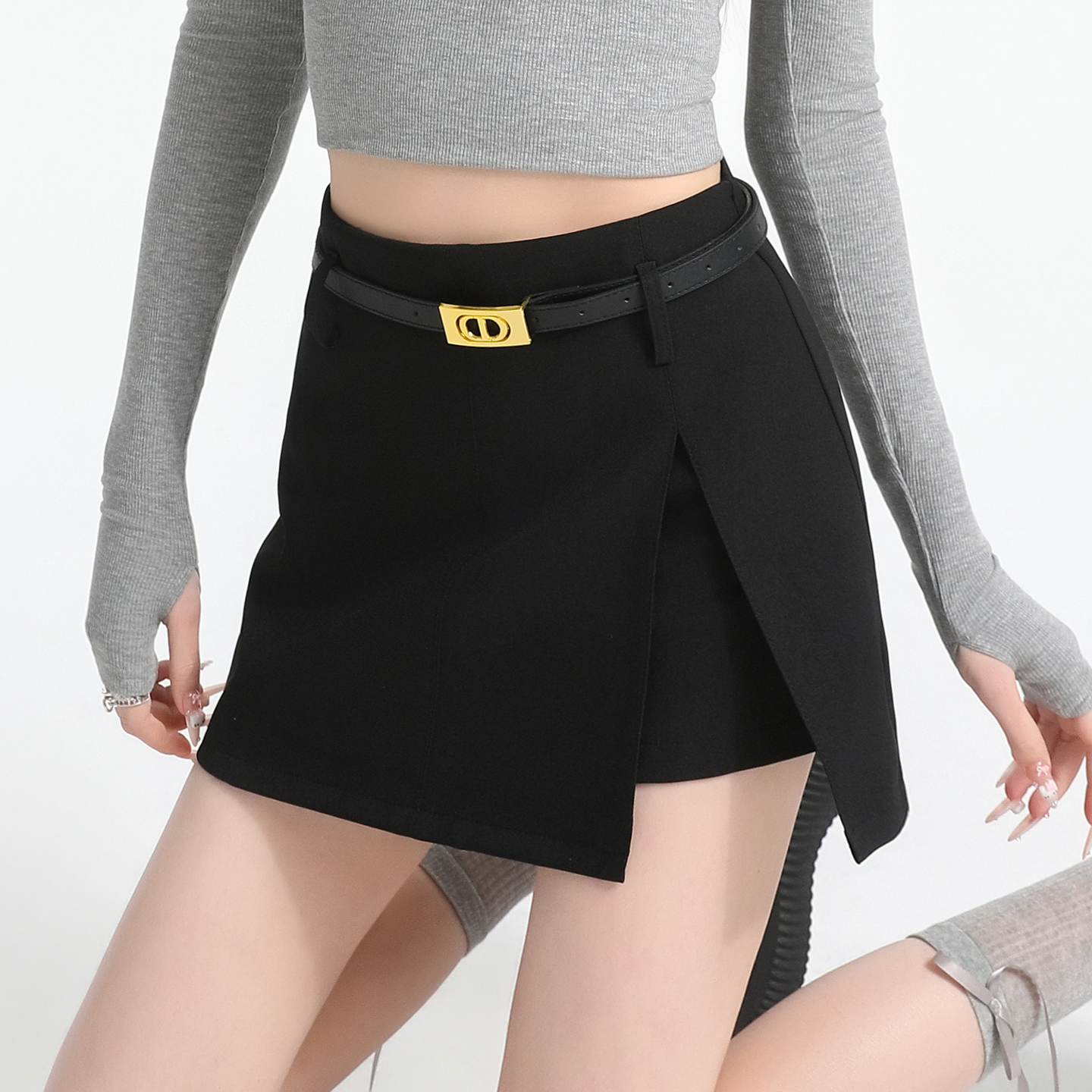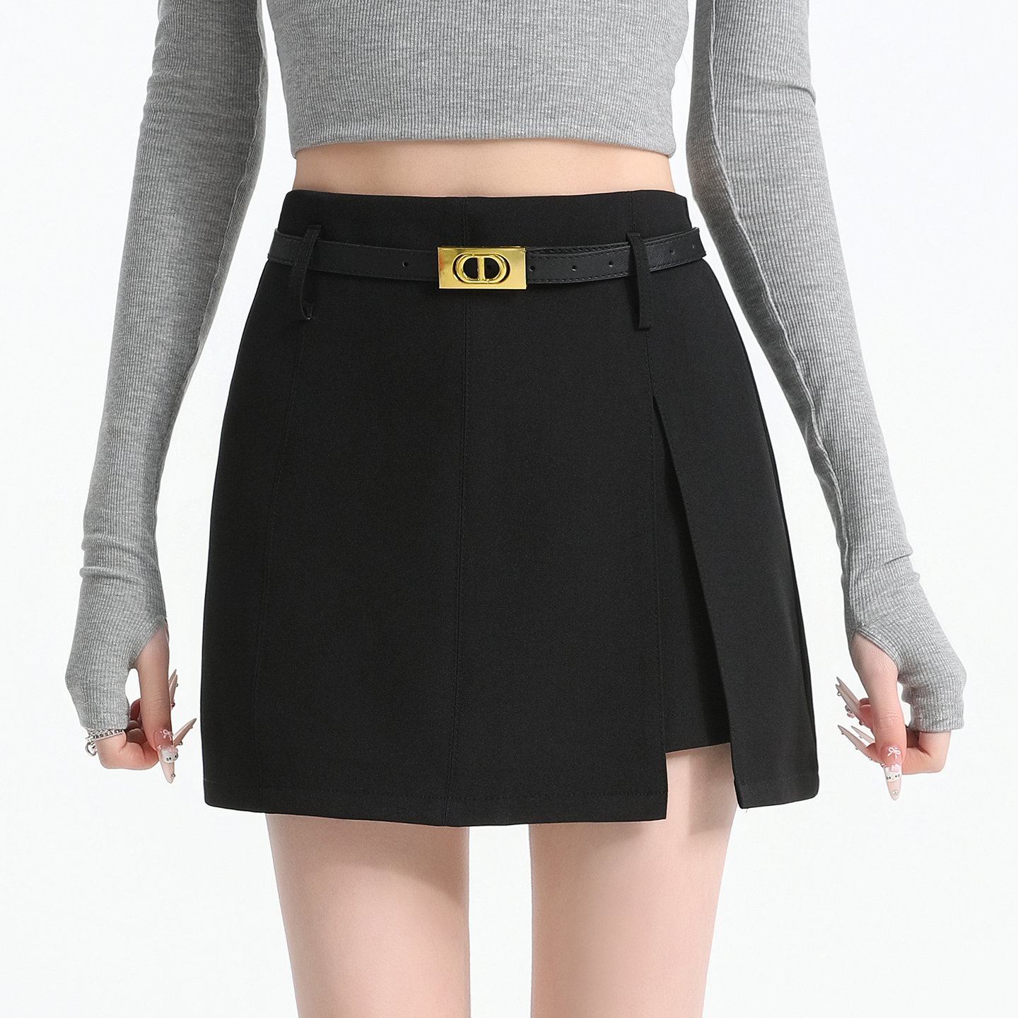 BY11987# 开叉a字半身裙女夏新款超火包臀灰色裙子小个子西装短裙 服裝批發女裝批發服飾貨源