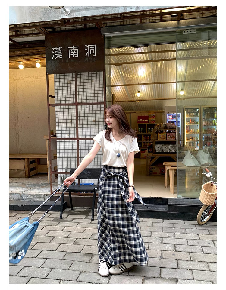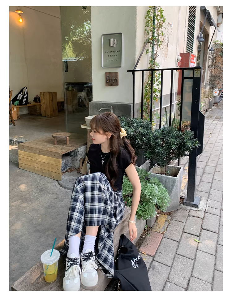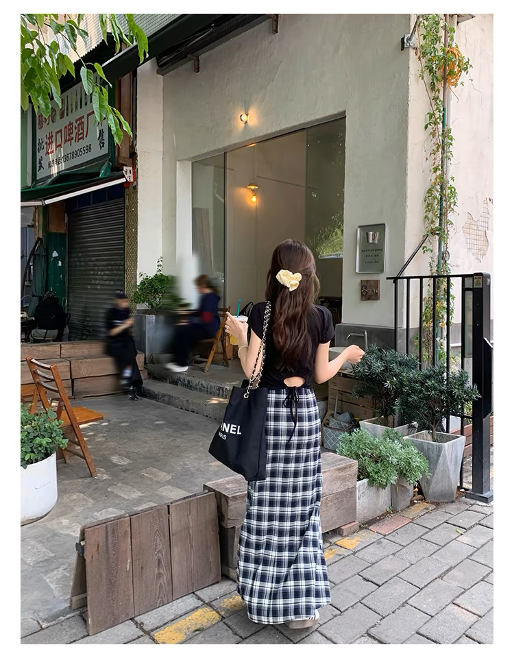 BY12136# 黑白格子气质显瘦复古裙子半裙夏季长裙女设计感时尚半身裙 服裝批發女裝批發服飾貨源