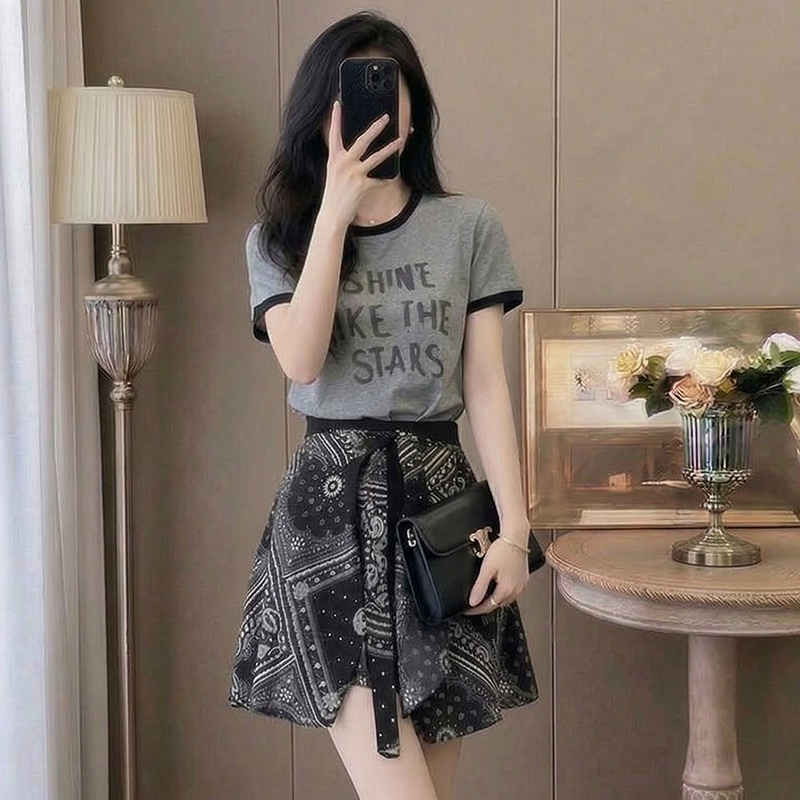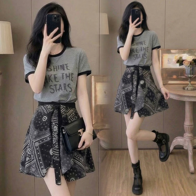 BY13715# 夏季新款美式复古炸街套装女潮流百搭上衣阔腿裙裤两件套潮 服裝批發女裝批發服飾貨源