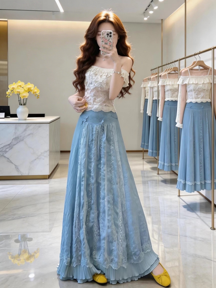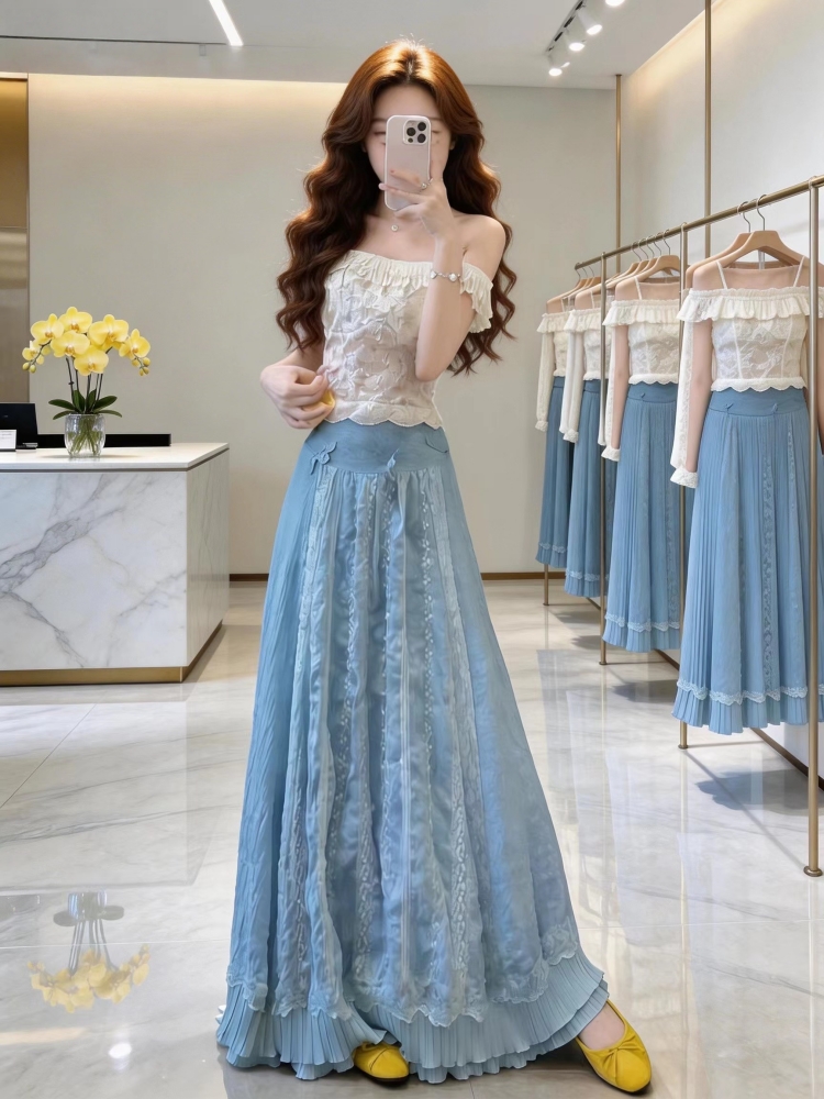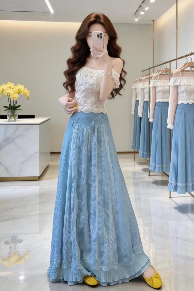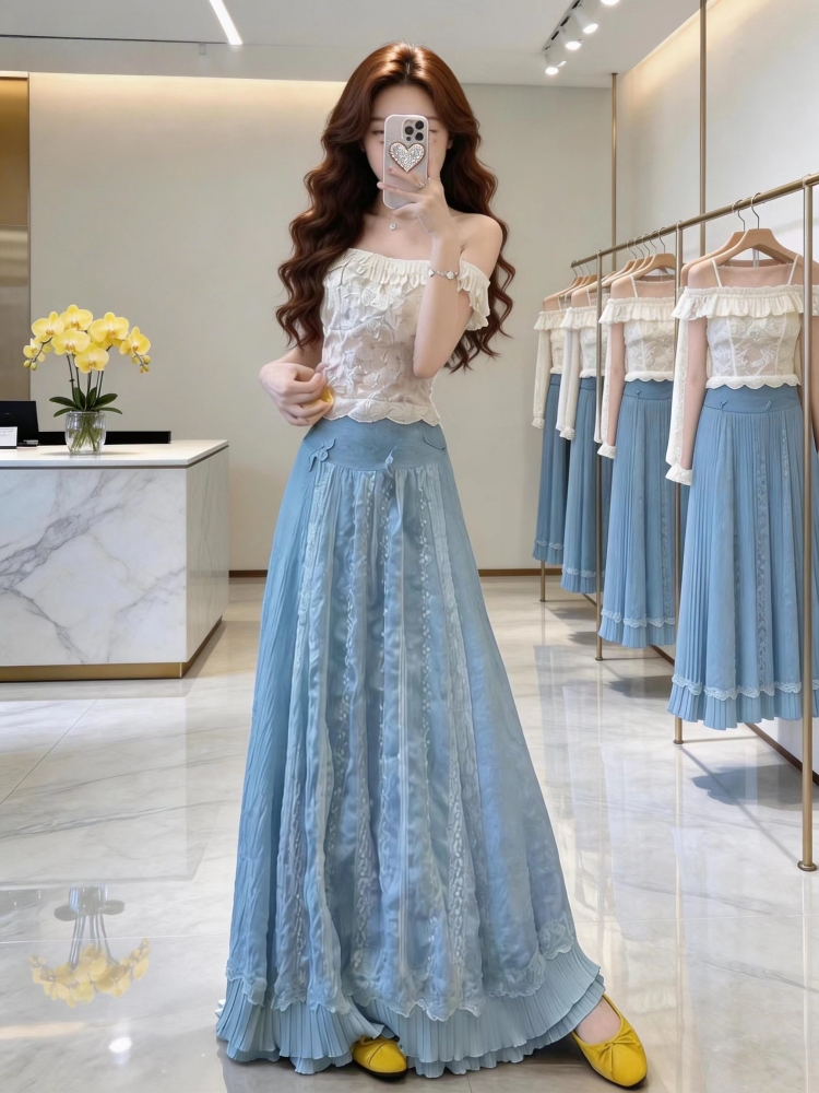 BY13753# 减龄一整套ootd穿搭夏季新款温柔风超好看一字肩上衣半身裙两件套 服裝批發女裝批發服飾貨源