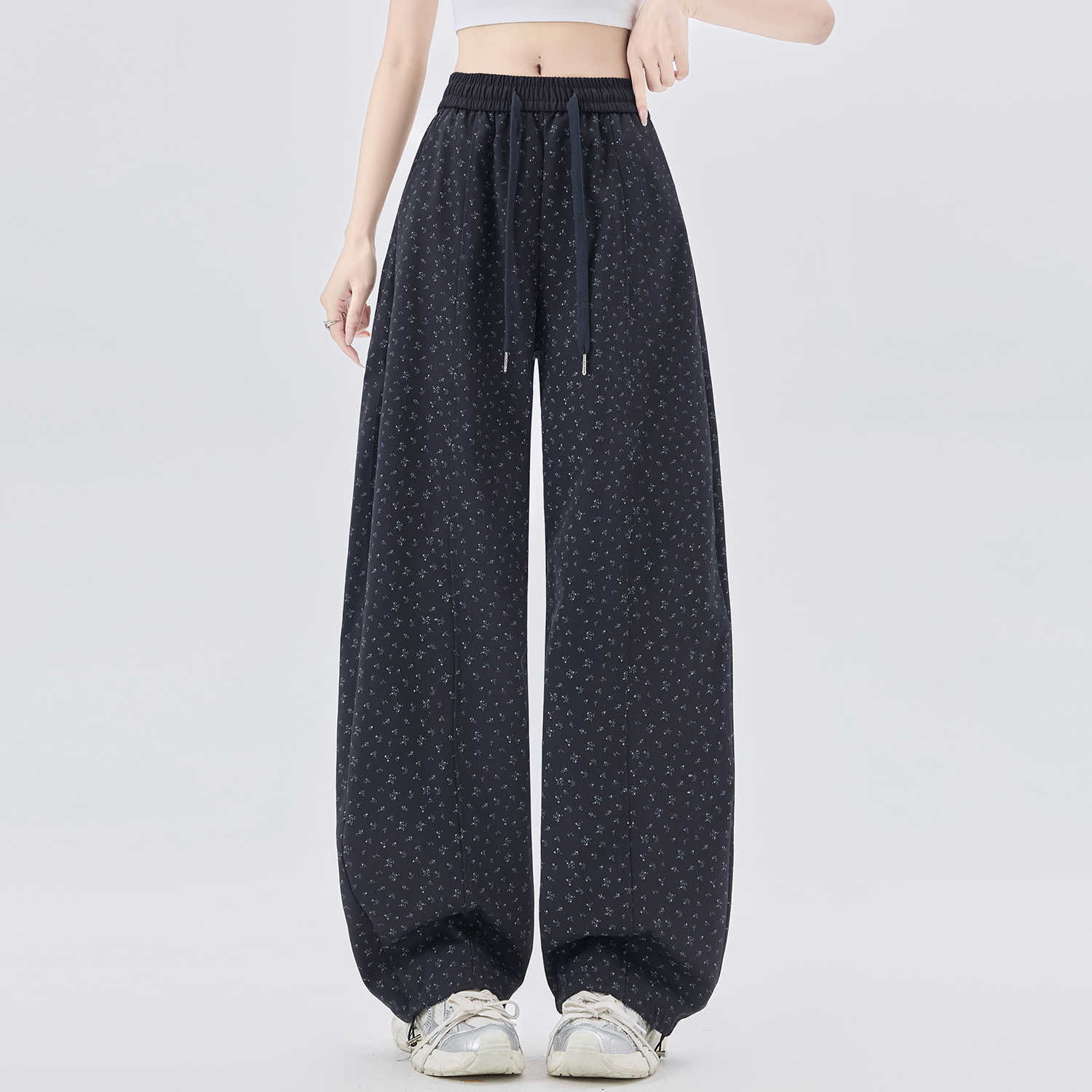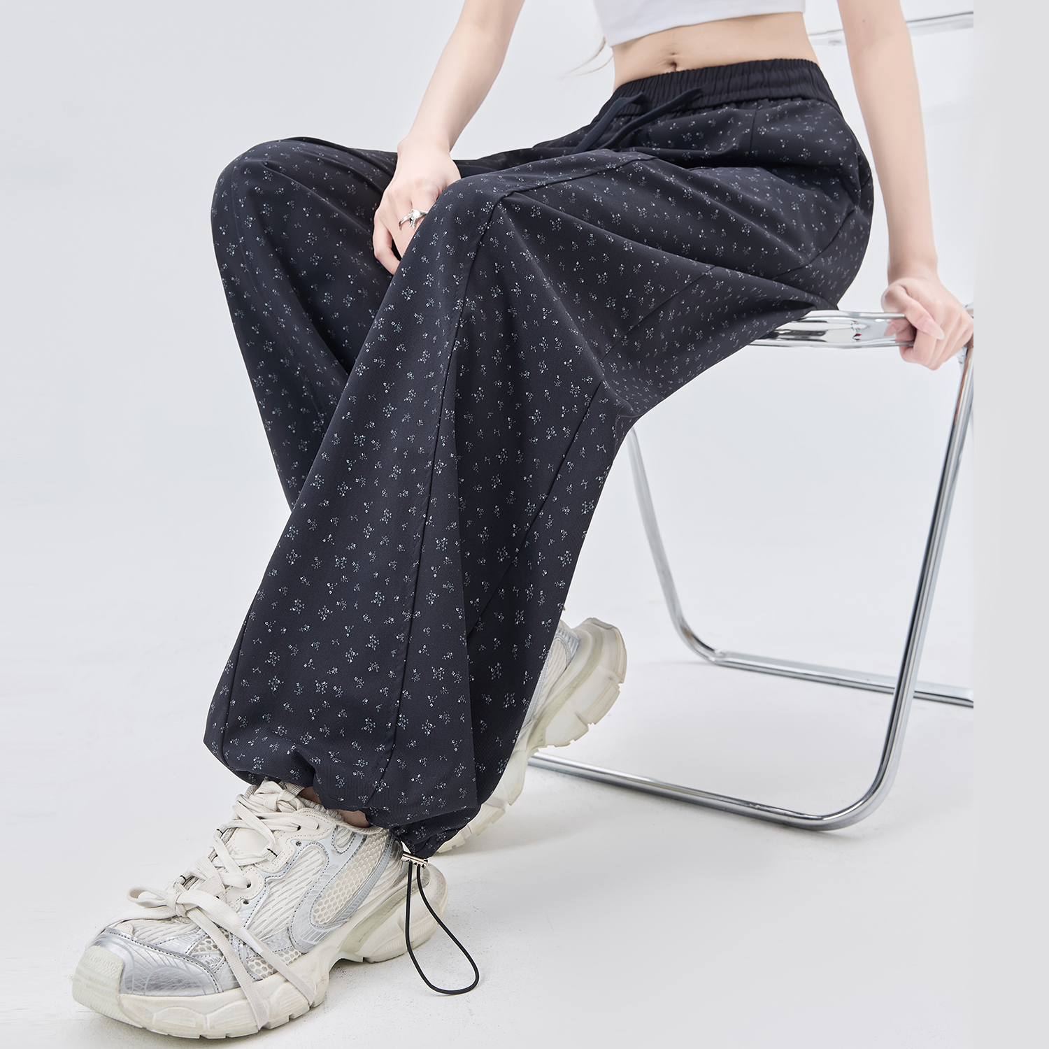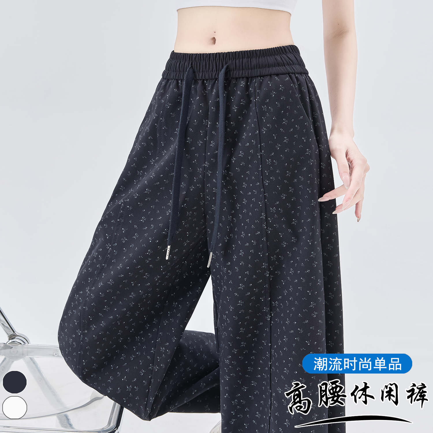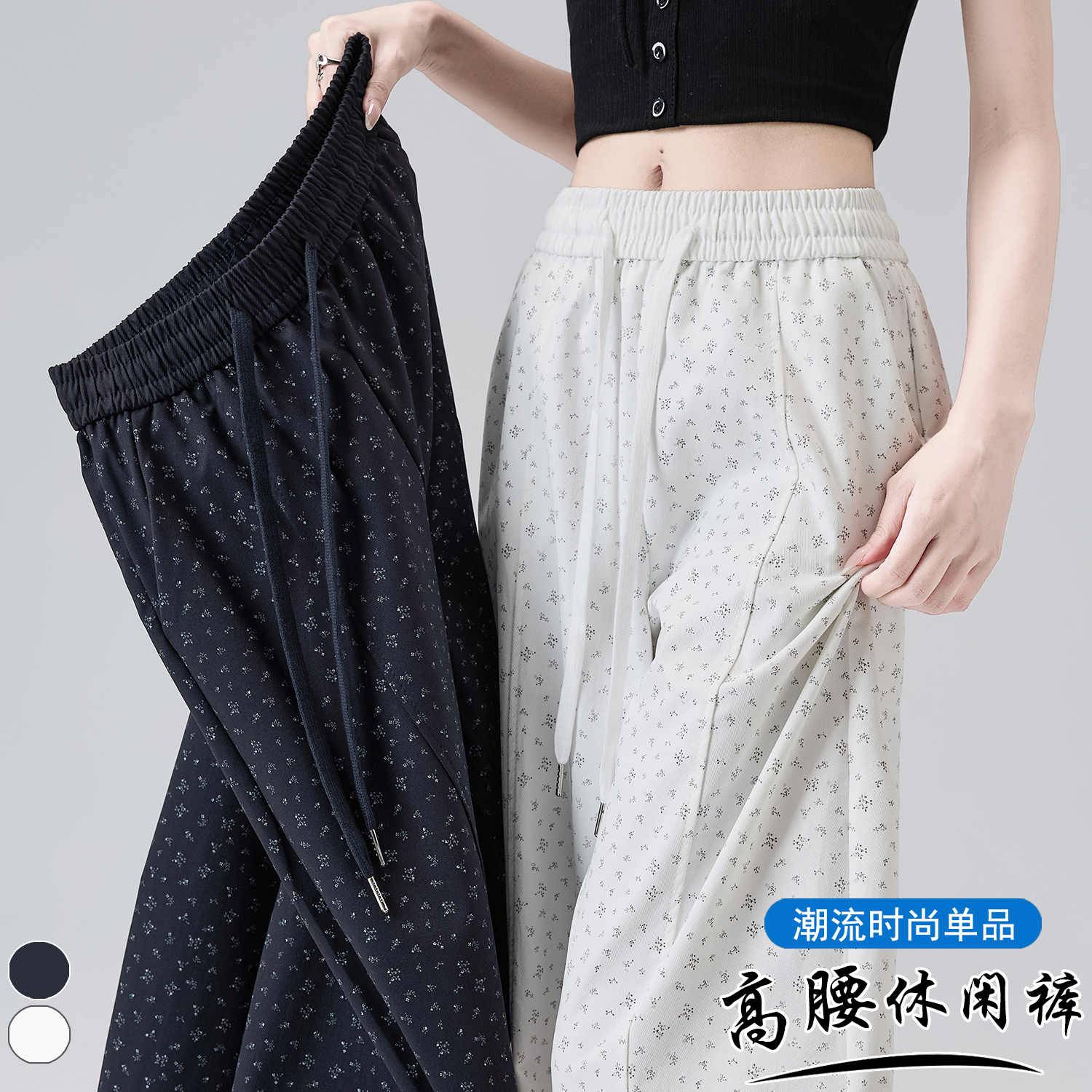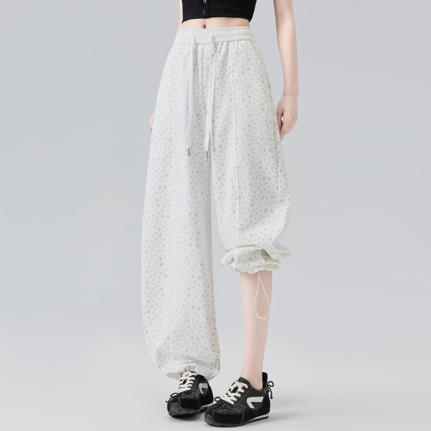 BY13764# 白色直筒碎花弯刀阔腿裤女夏季新款高腰显瘦束脚休闲长裤 服裝批發女裝批發服飾貨源