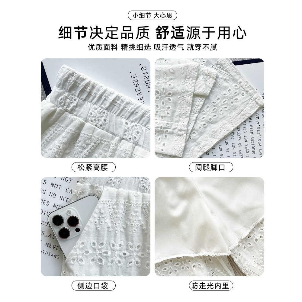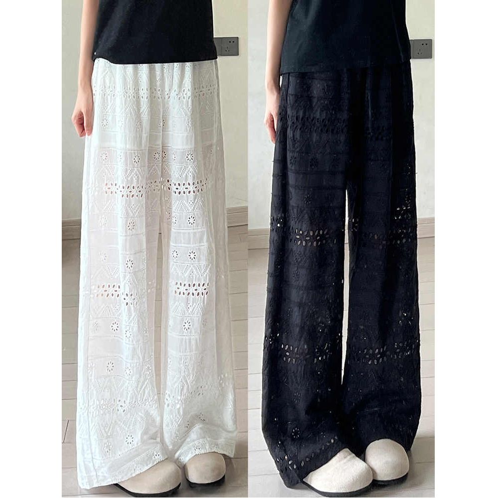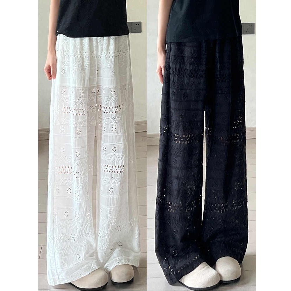 BY13792# 白色阔腿裤女夏季薄款新款时尚洋气薄款垂感镂空蕾丝直筒裤子 服裝批發女裝批發服飾貨源