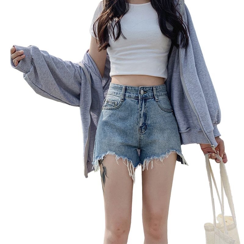 BY14644# 韩版宽松牛仔短裤女夏季不规则毛边设计宽松显瘦外穿阔腿热裤 服裝批發女裝批發服飾貨源