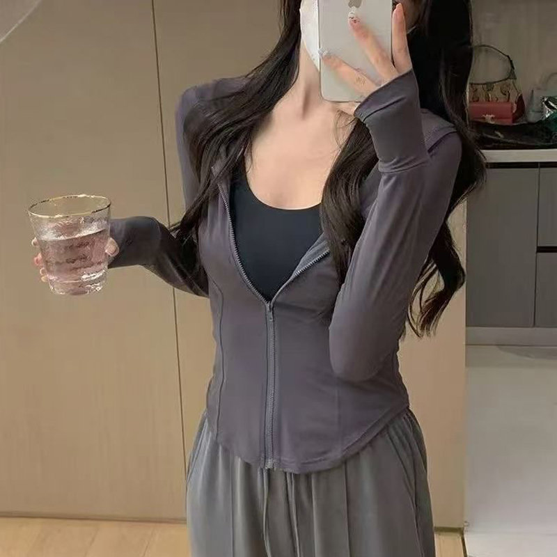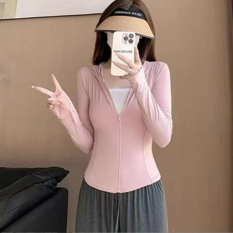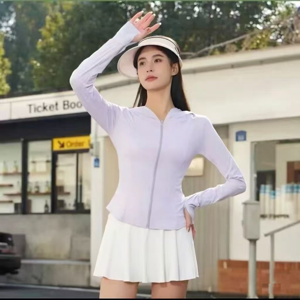 BY14656# 冰丝凉感面料8色修身防晒女开衫外套薄款运动瑜伽服收腰连帽上衣 服裝批發女裝批發服飾貨源