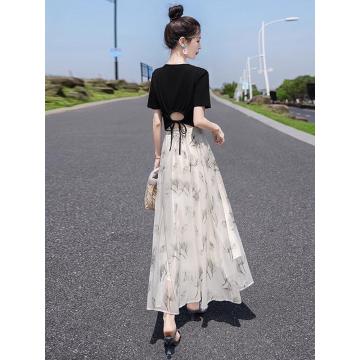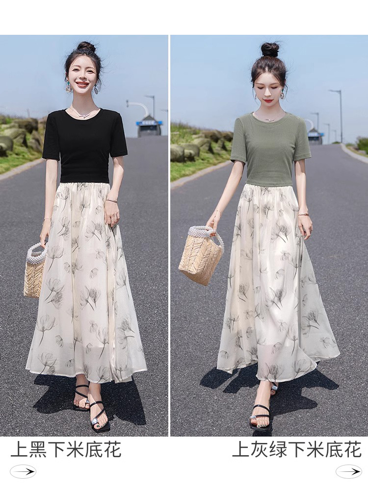 BY14669# 显瘦套装夏装新款女短款上衣搭高腰半身裙气质两件套 服裝批發女裝批發服飾貨源