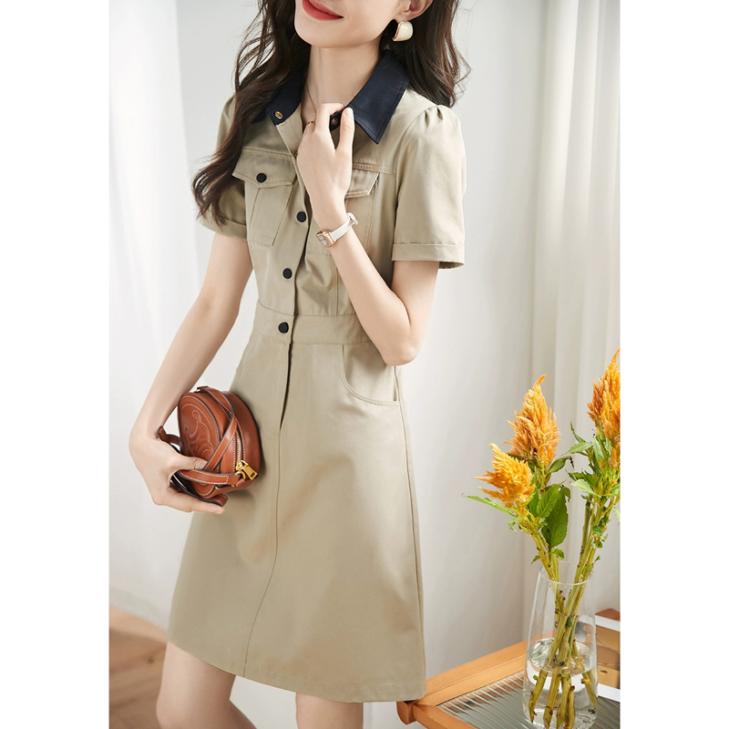 BY14672# 撞色工装风设计感裙子夏季新款韩版时尚休闲连衣裙女 服裝批發女裝批發服飾貨源
