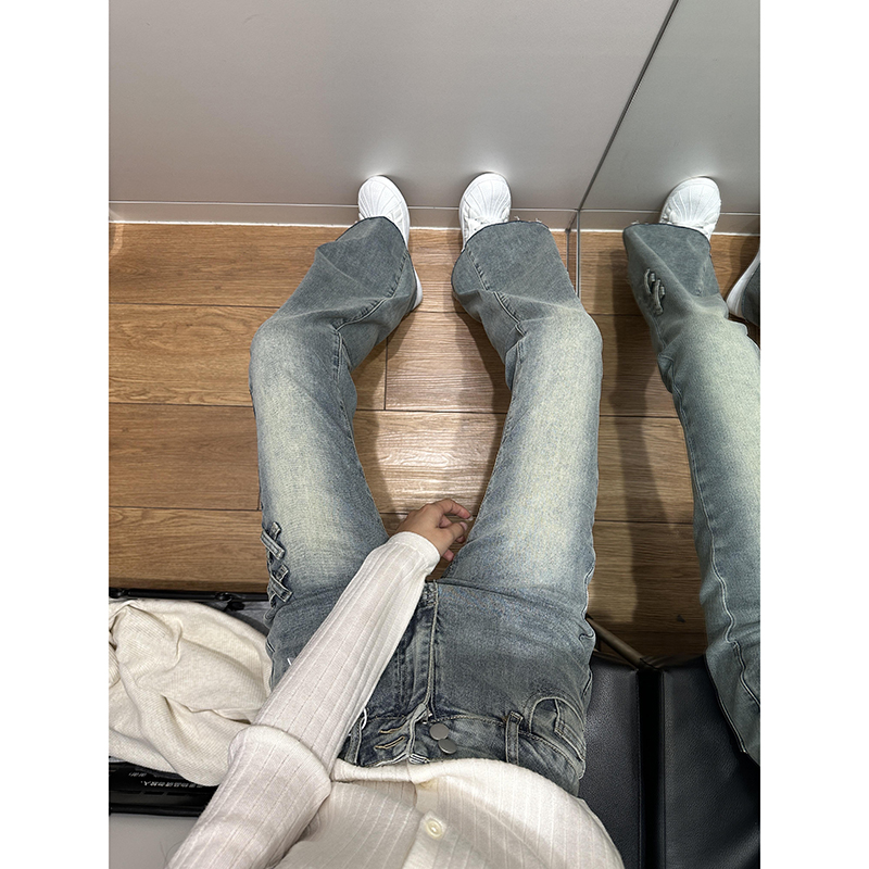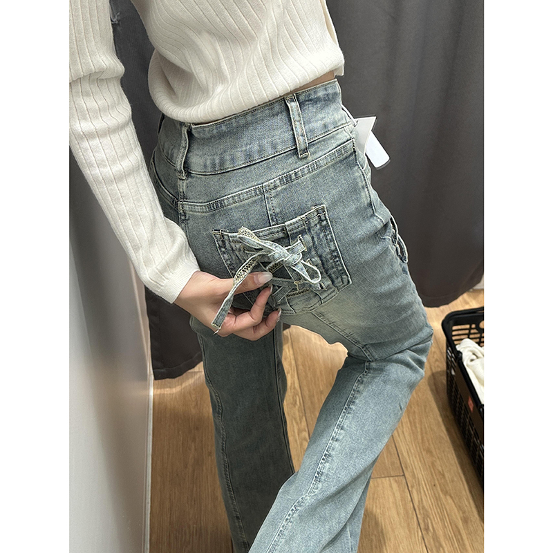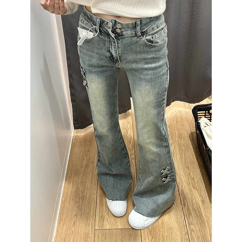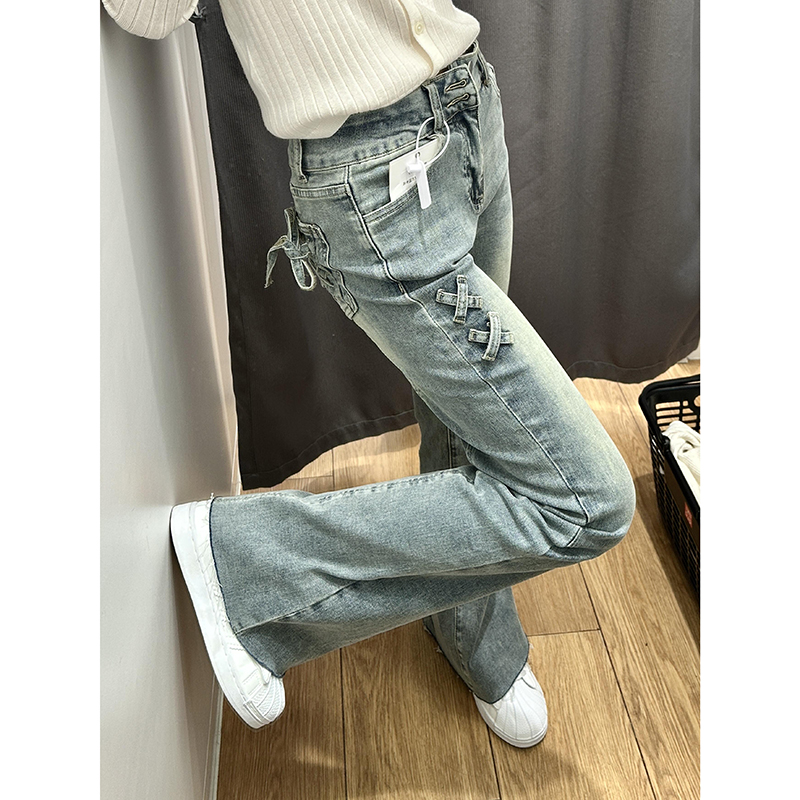 BY16529# 美式复古低腰微喇牛仔裤女设计感双排扣宽松直筒阔腿喇叭裤子 服裝批發女裝批發服飾貨源