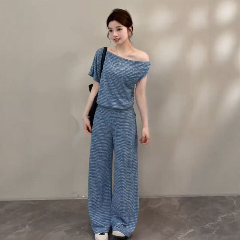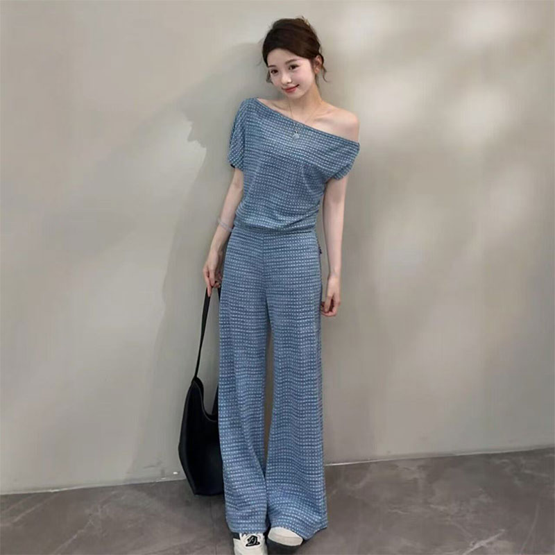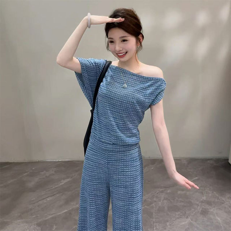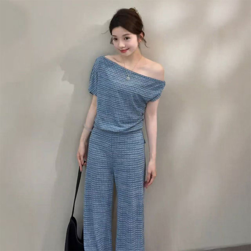 BY16558# 颂宋夏季新款简约时尚休闲短上衣搭配高腰阔腿裤女款套装 服裝批發女裝批發服飾貨源