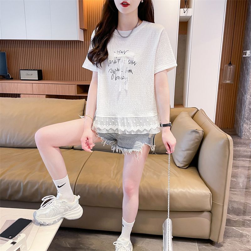BY16587# 短袖t恤女夏季新款宽松时尚韩版大蝴蝶结蕾丝气质上衣女 服裝批發女裝批發服飾貨源