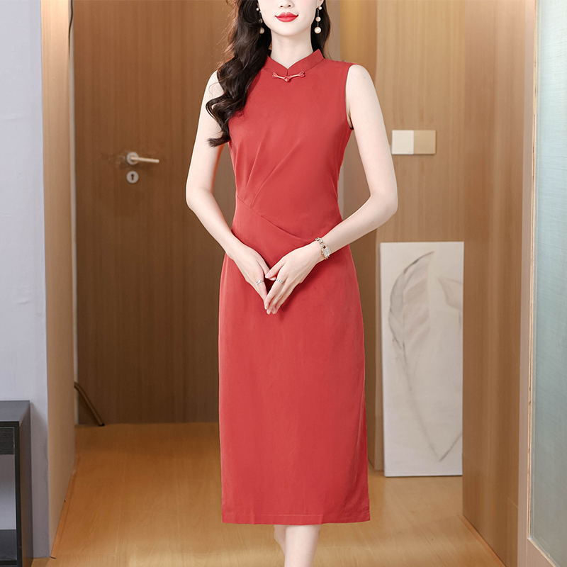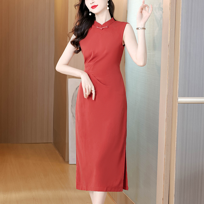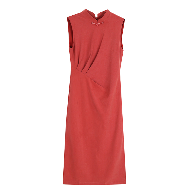 BY16622# 国风褶皱收腰连衣裙女夏新中式立领修身旗袍裙 服裝批發女裝批發服飾貨源