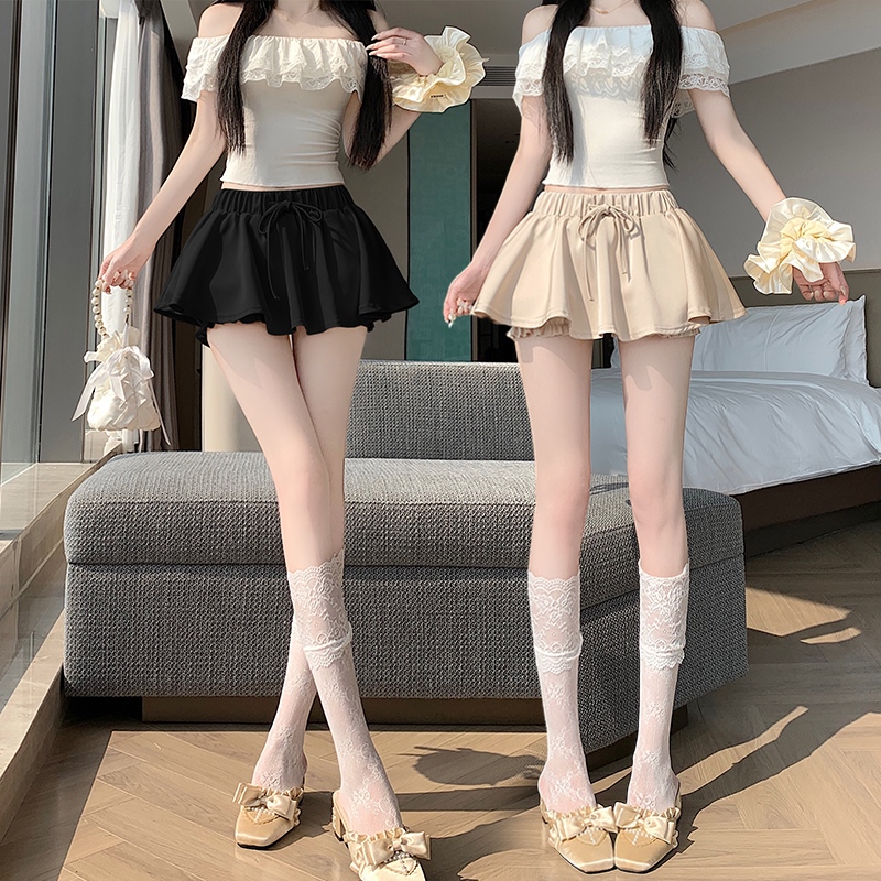 BY17245# 纯欲辣妹芭蕾风缎面半身裙夏季高腰显瘦抽绳裙裤蓬蓬裙