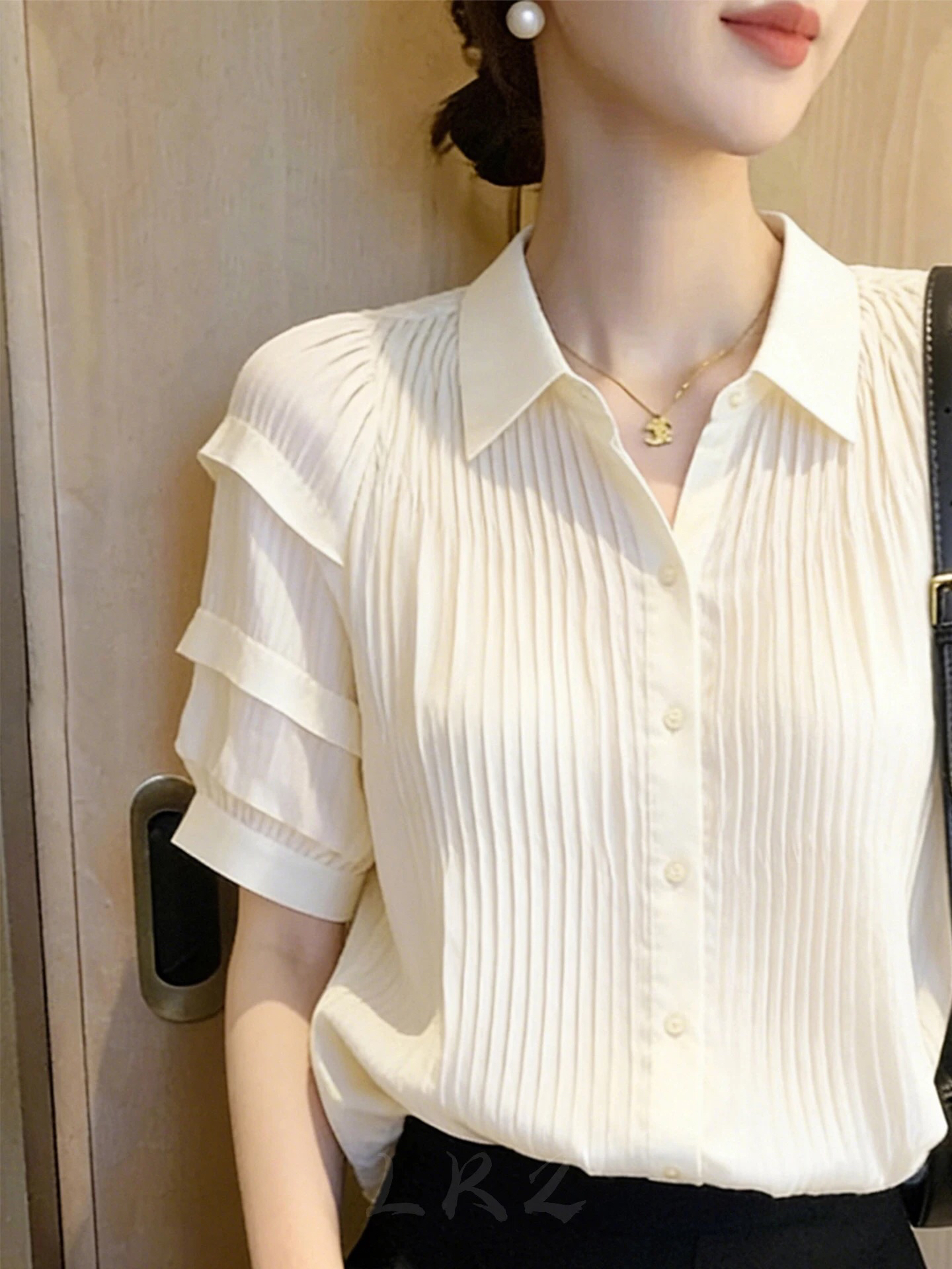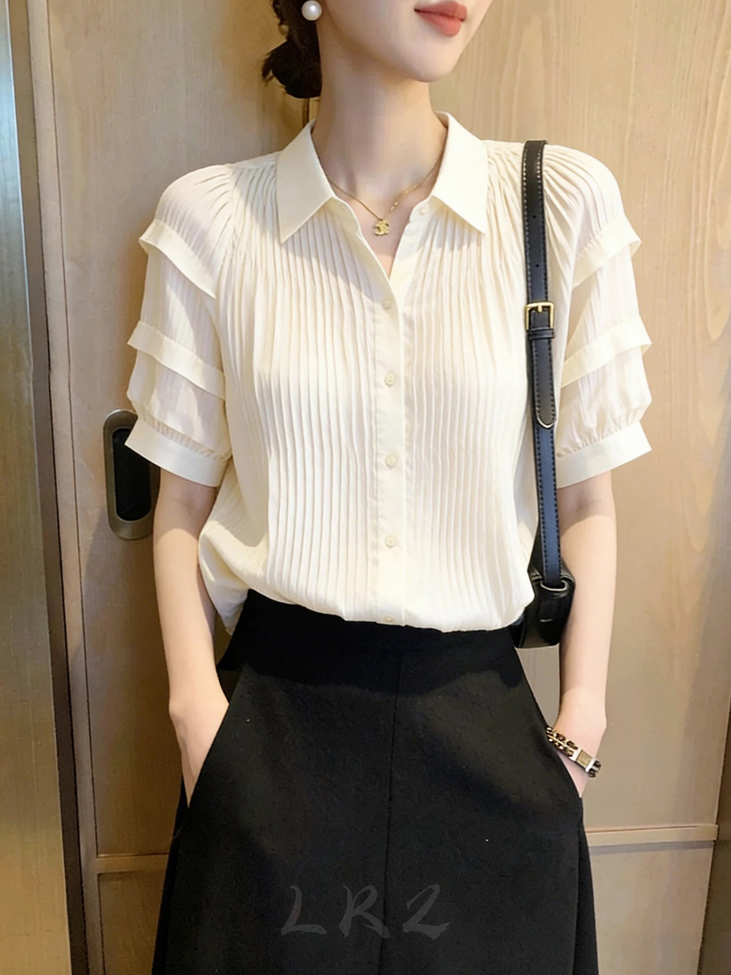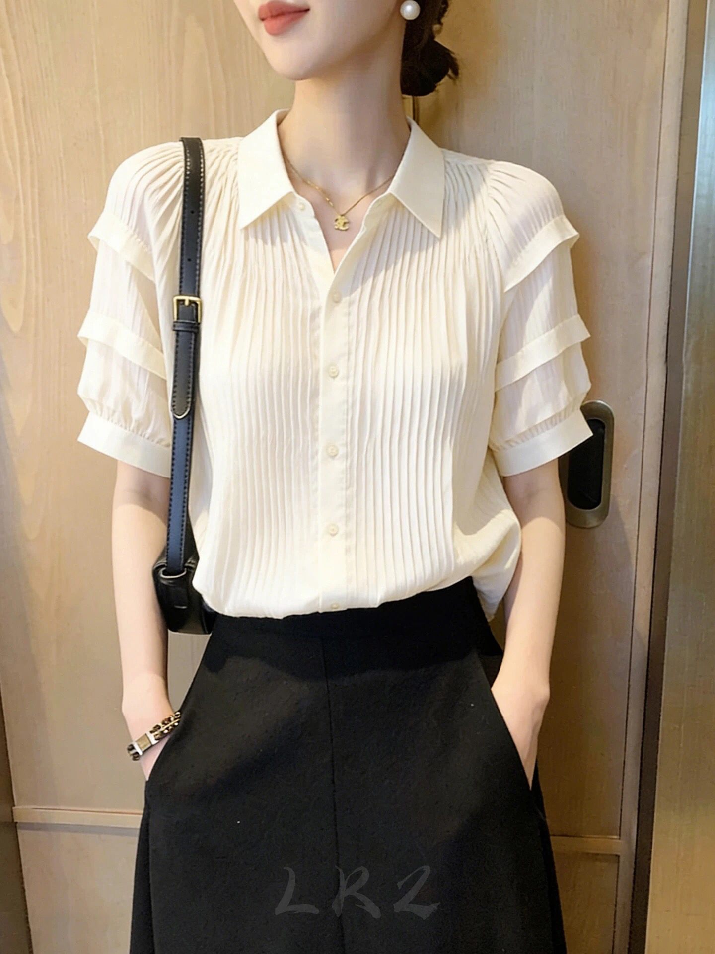 BY17382# 法式白色POLO领衬衫女夏季新款时尚洋气长袖衬衣气质减龄上衣