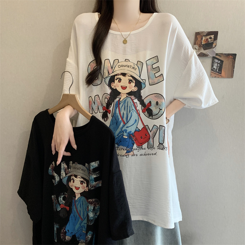 首页 > 短袖T恤 > BY17385# 夏季新款大码T恤女胖mm遮肉显瘦宽松上衣